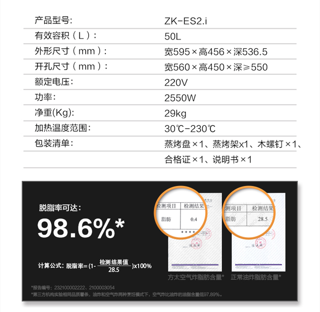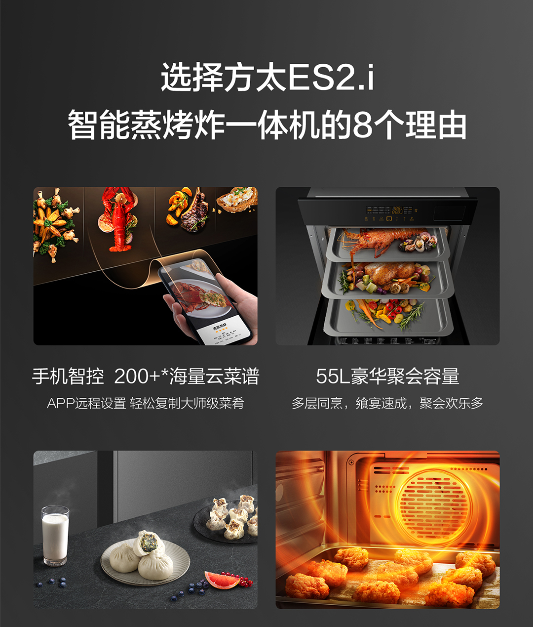 方太ES2.i嵌入式蒸烤炸一体机 蒸烤箱家用烘焙多功能 智能电蒸烤箱50L豪华大容量蒸箱烤箱二合一官方正品