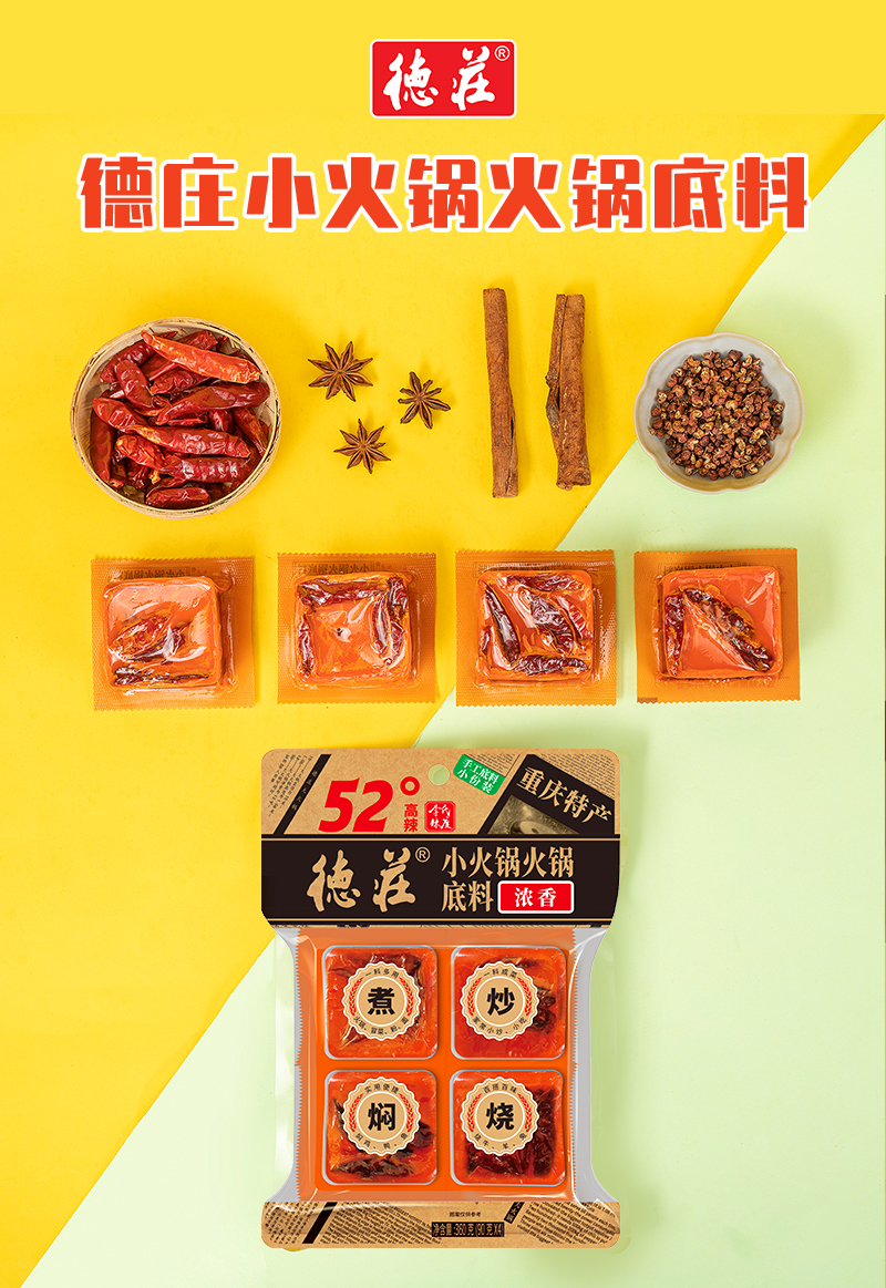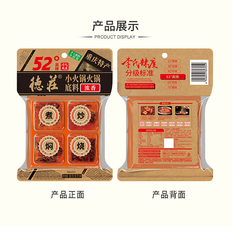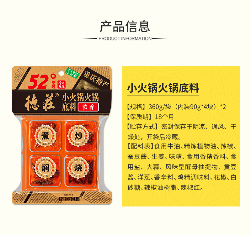 德庄小火锅火锅底料52° 360g/袋(内装90g*4块)*2