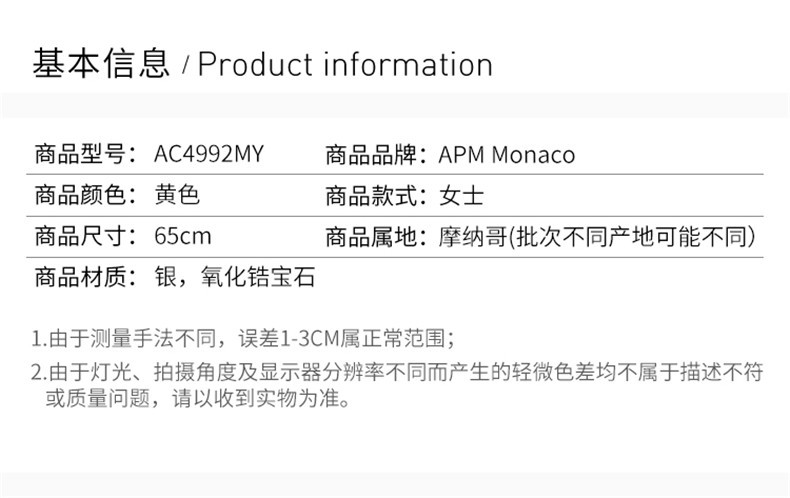 APM MONACO 黄色项链 AC4992MYJPY带授权招加盟代理