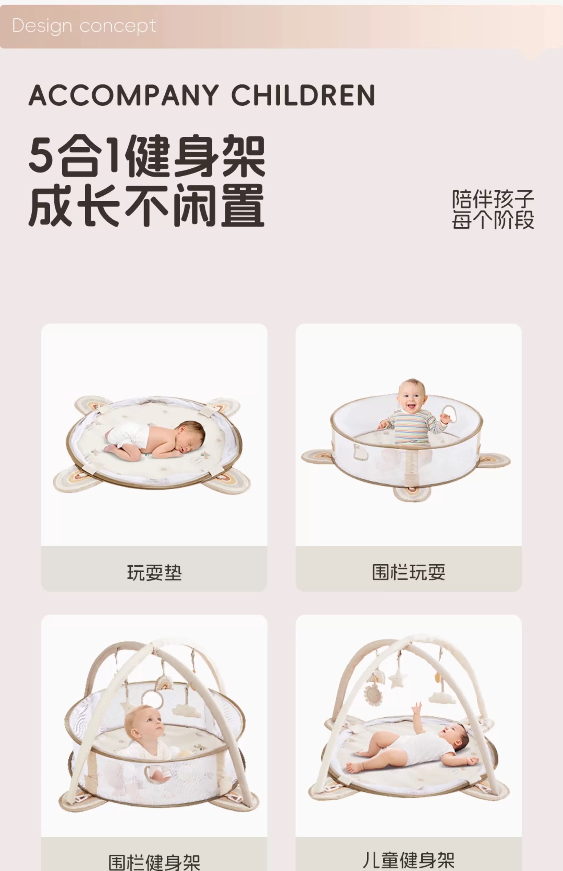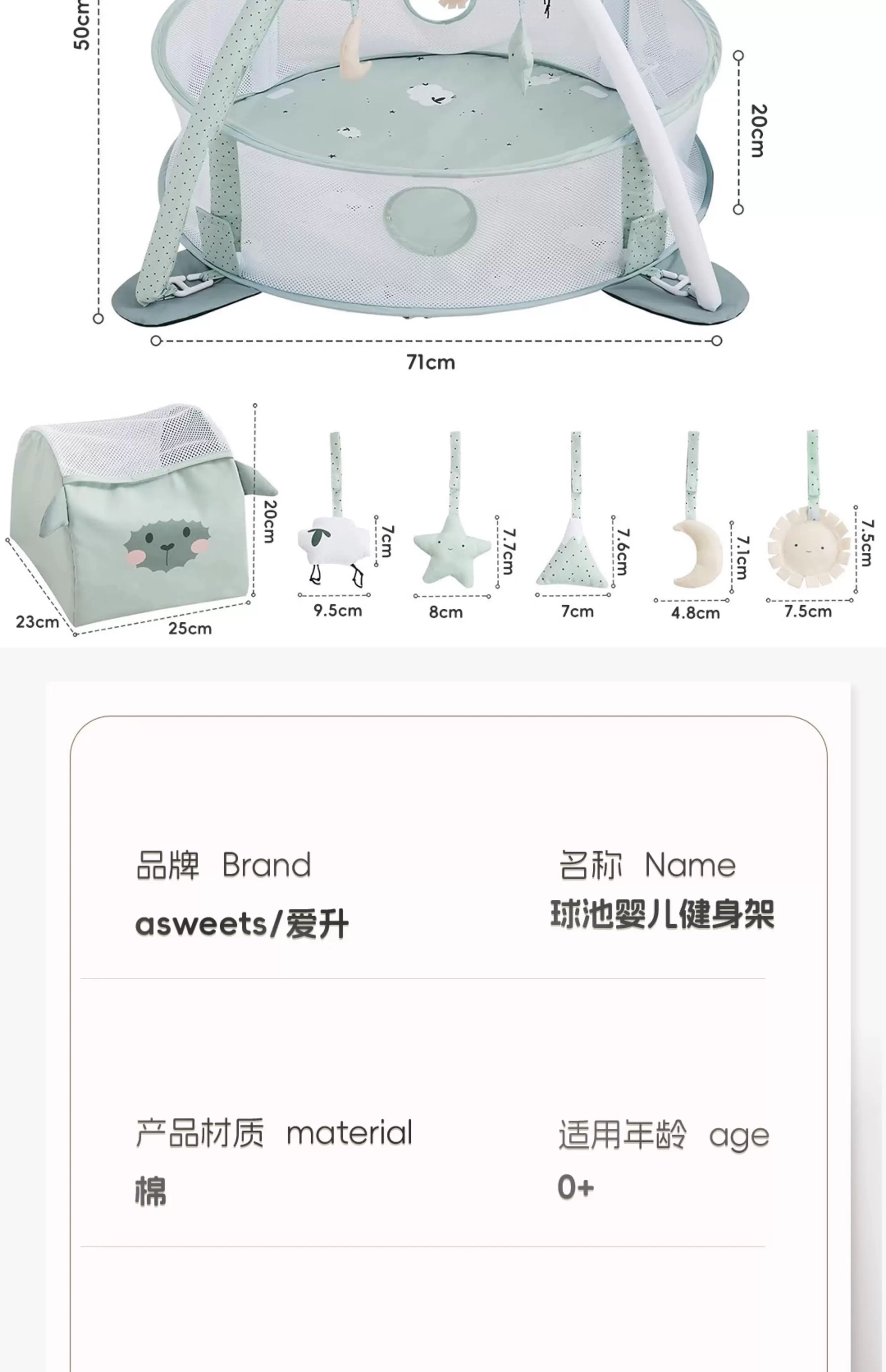 asweets婴儿健身架球池5合1新生儿礼物早教启蒙多功能游戏毯围栏