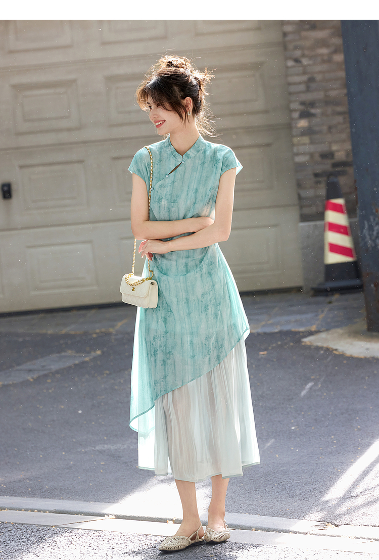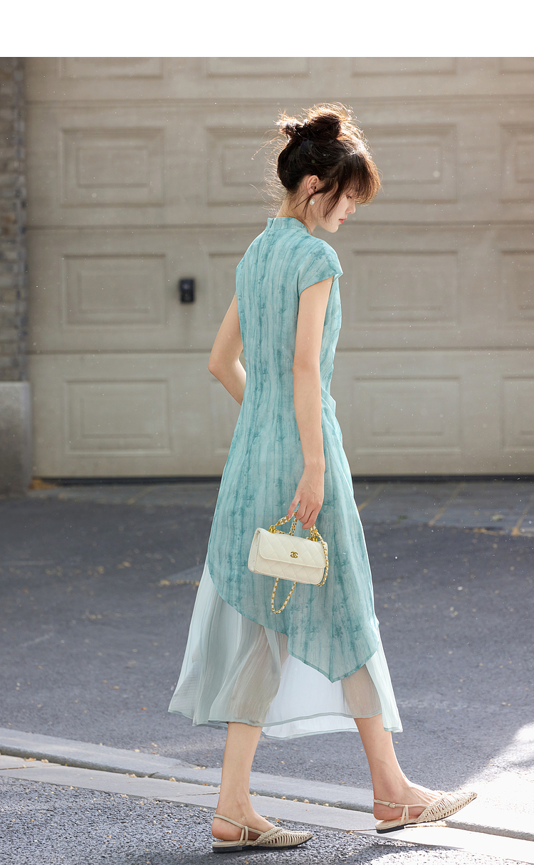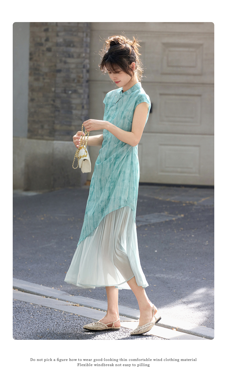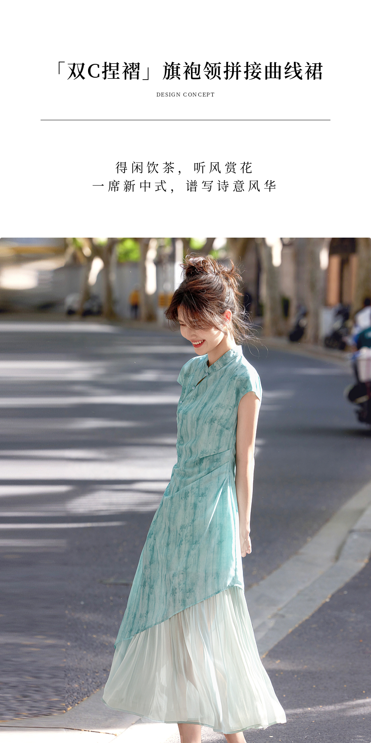 【周末秒杀】熙世界新中式改良旗袍连衣裙女夏季新款国风晕染印花禅意茶服裙子