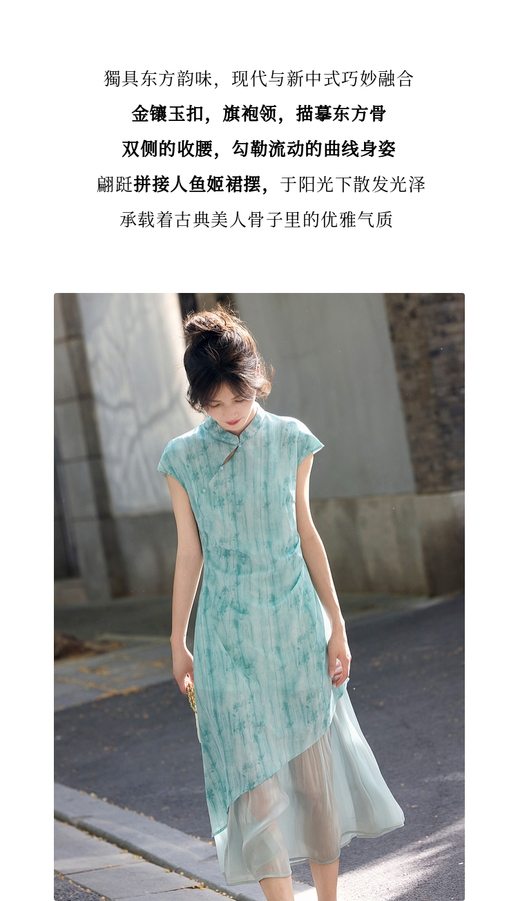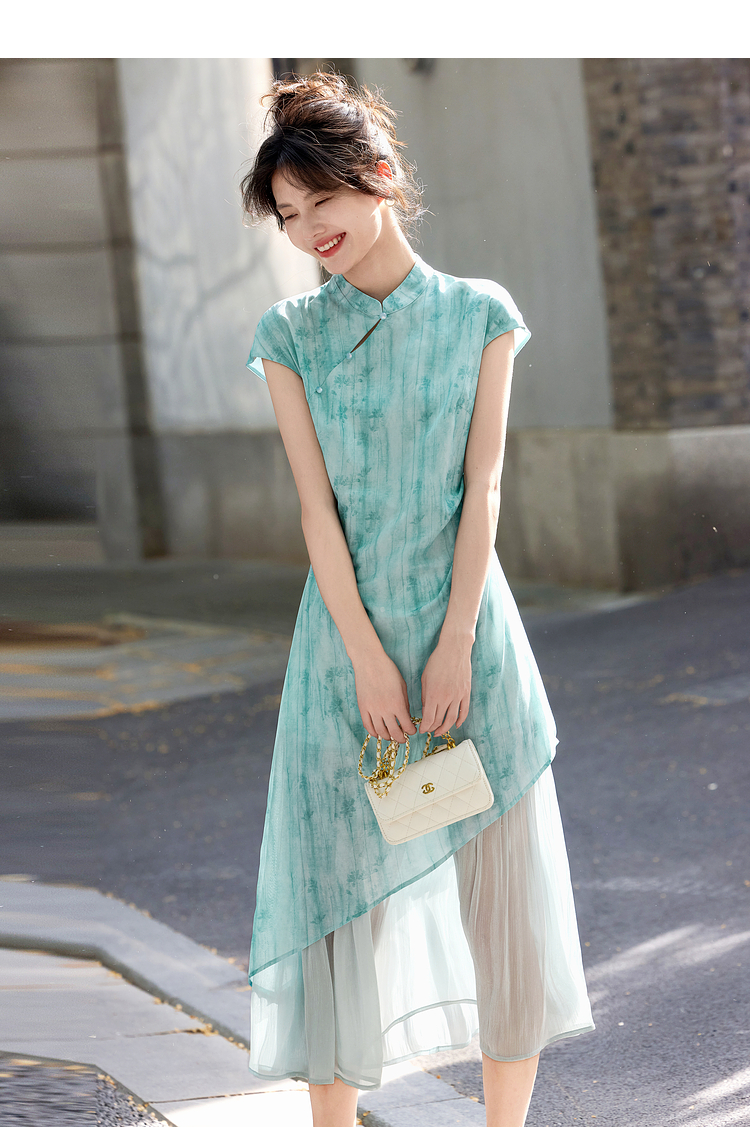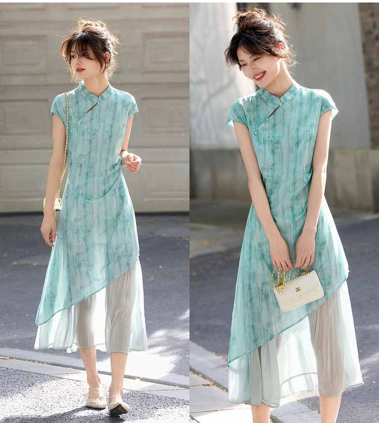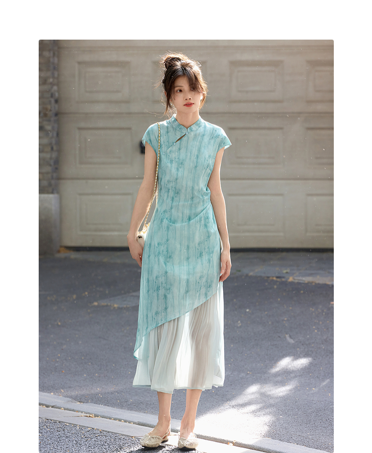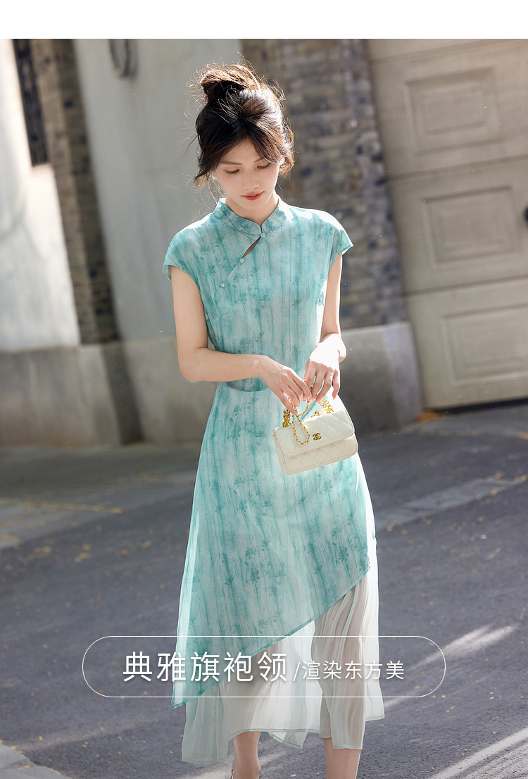 【周末秒杀】熙世界新中式改良旗袍连衣裙女夏季新款国风晕染印花禅意茶服裙子