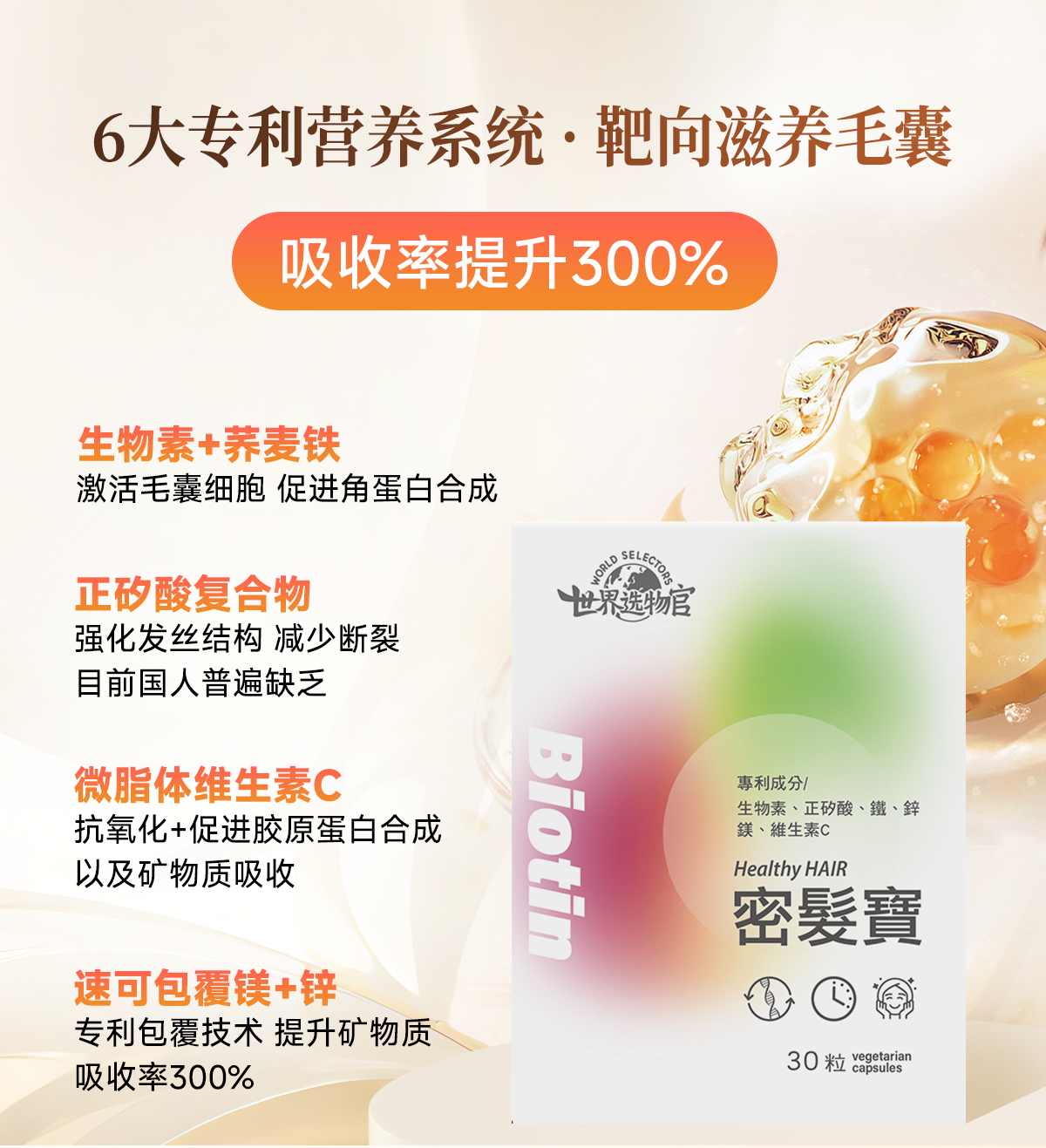 世界选物官密发宝固发多发铁锌矽镁生物素30粒/盒