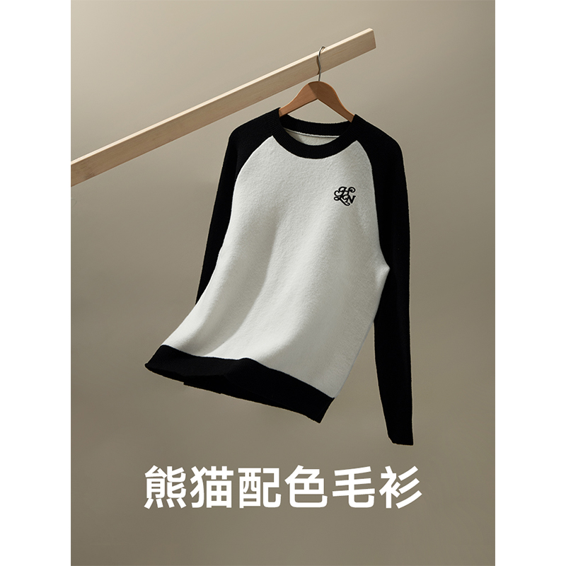 GXG男装 插肩袖设计毛衣胸前绣花针织衫通勤男线衫冬季热卖