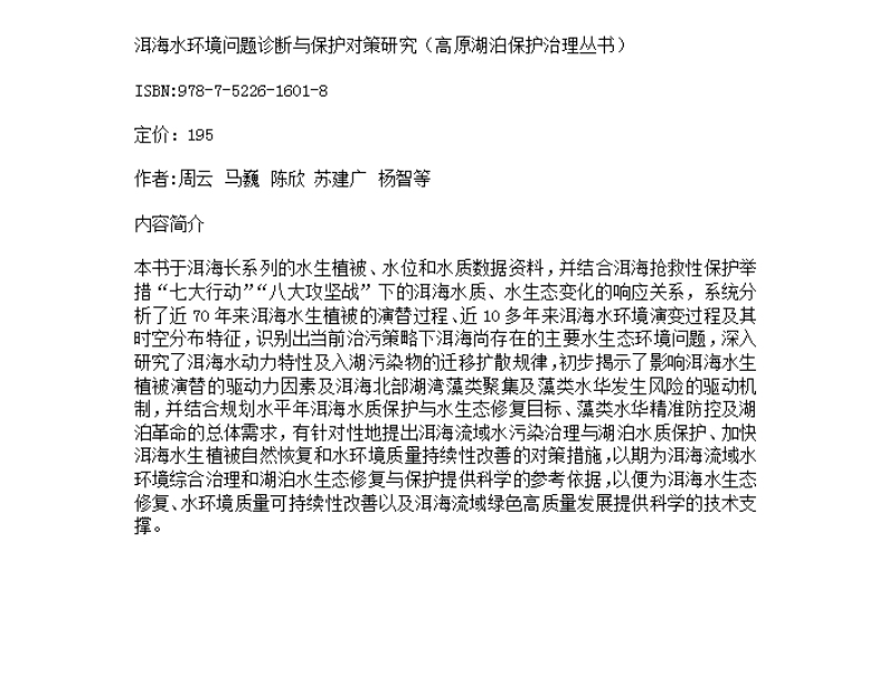 洱海水环境问题诊断与保护对策研究(高原湖泊保护治理丛书)
