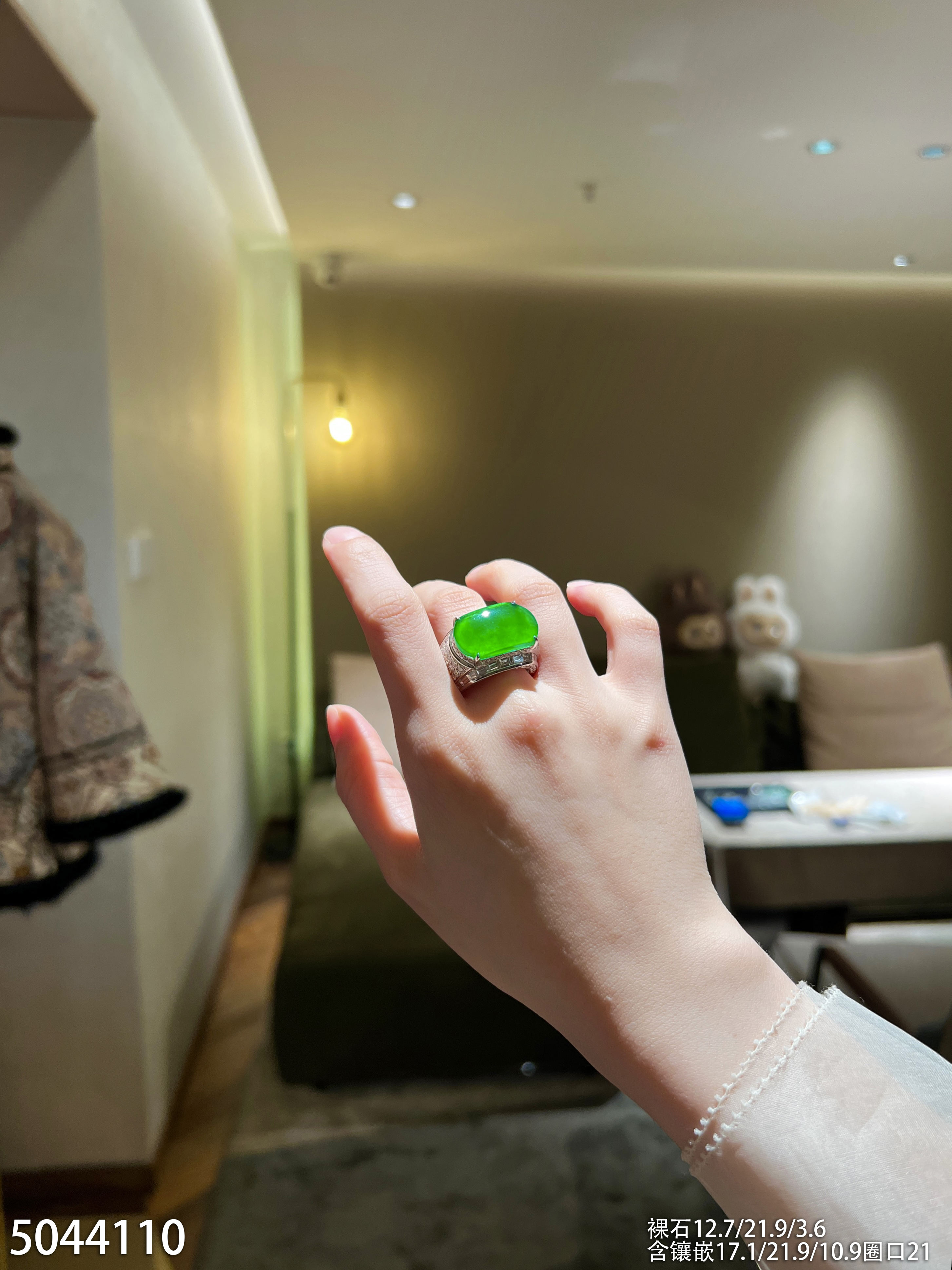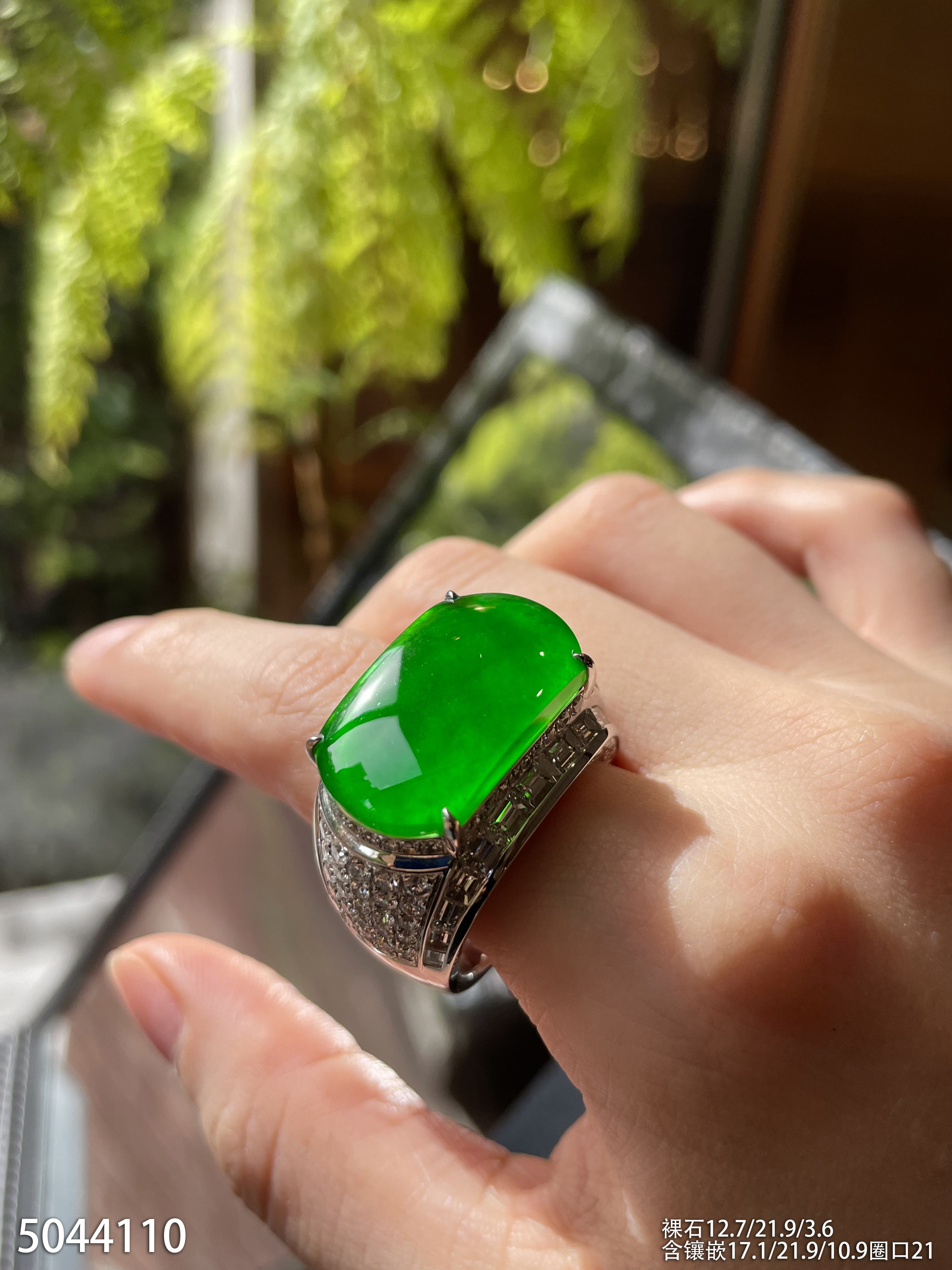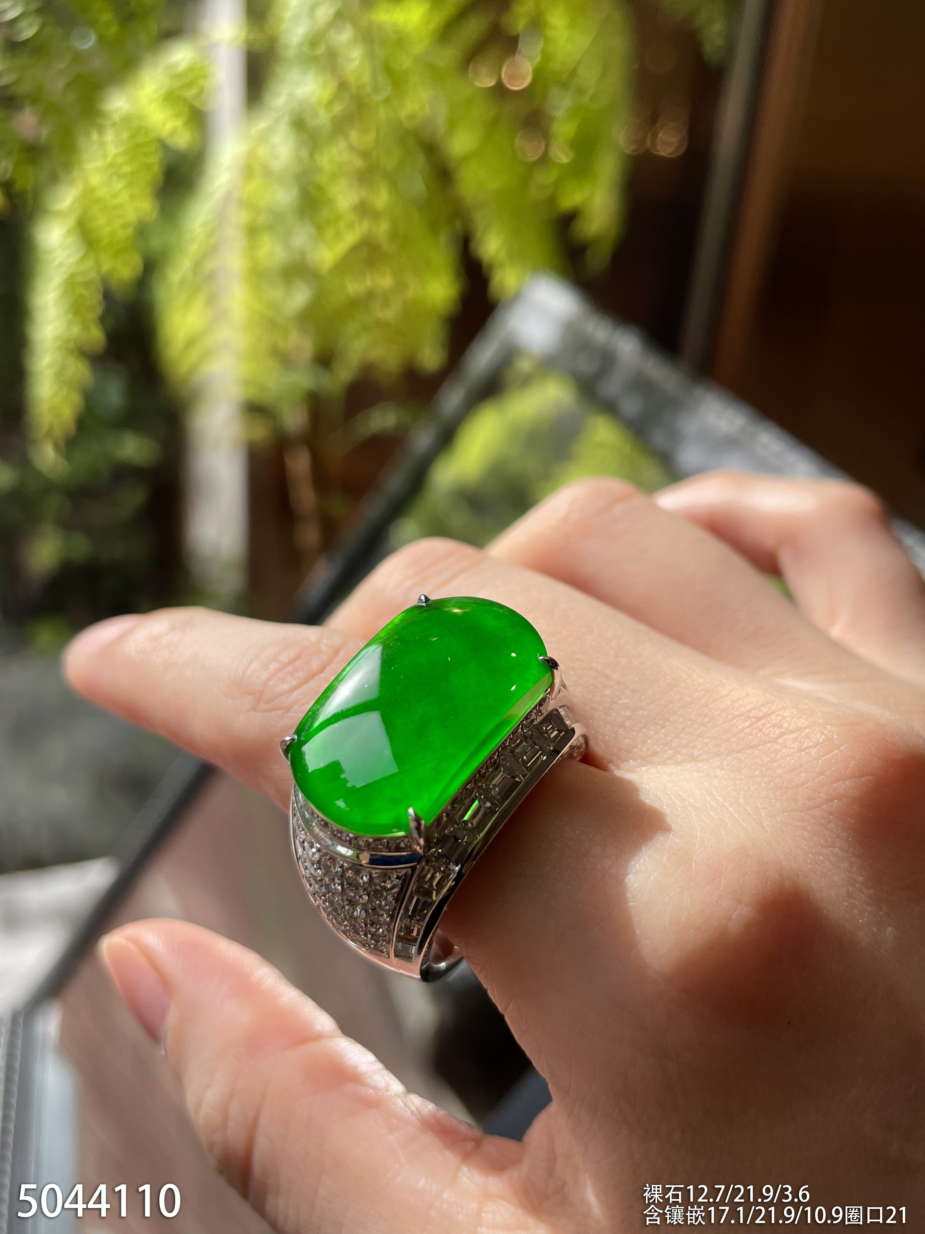 老坑玻璃种帝王绿无事牌戒指【5044110】具体价格微信咨询