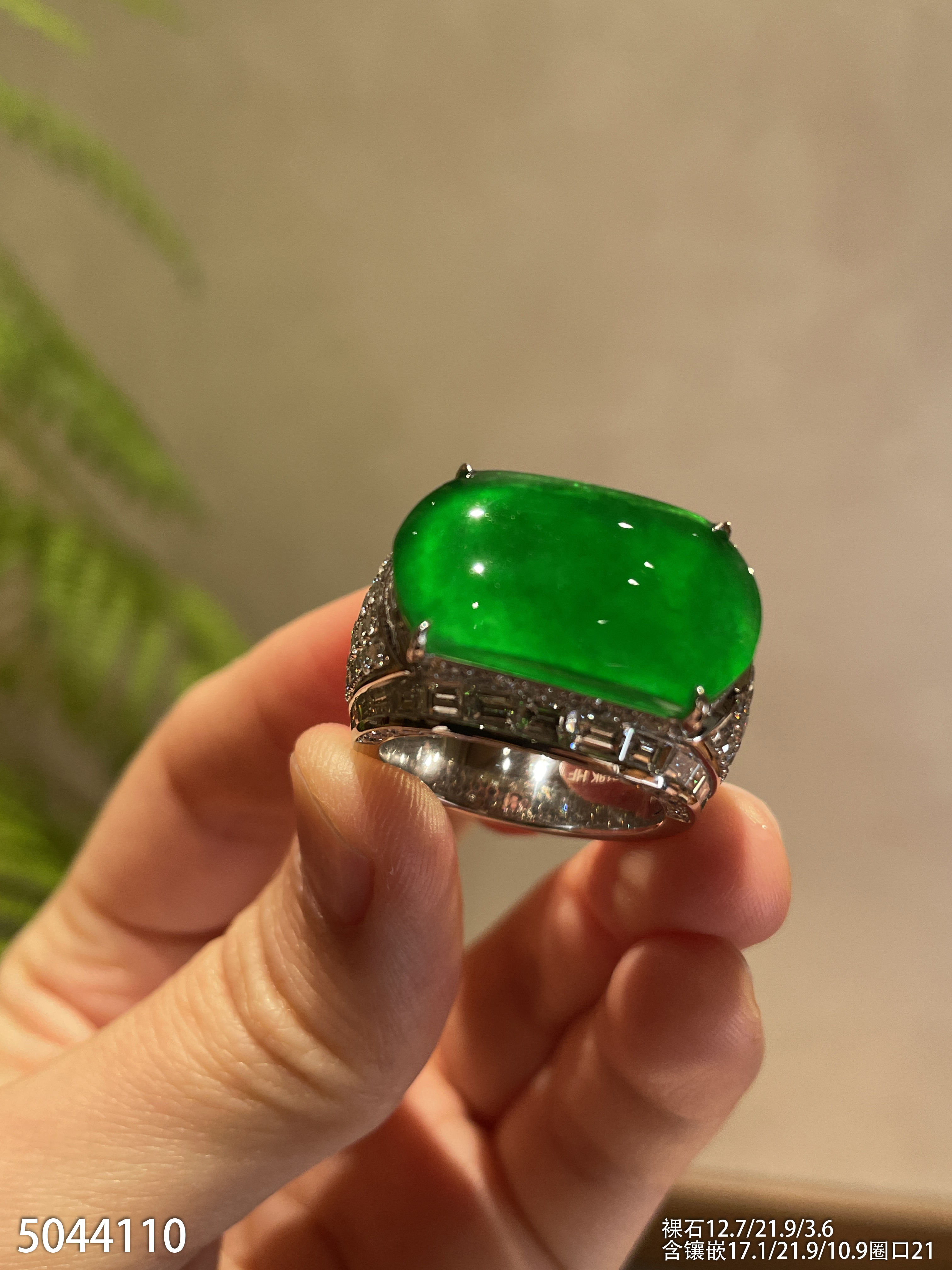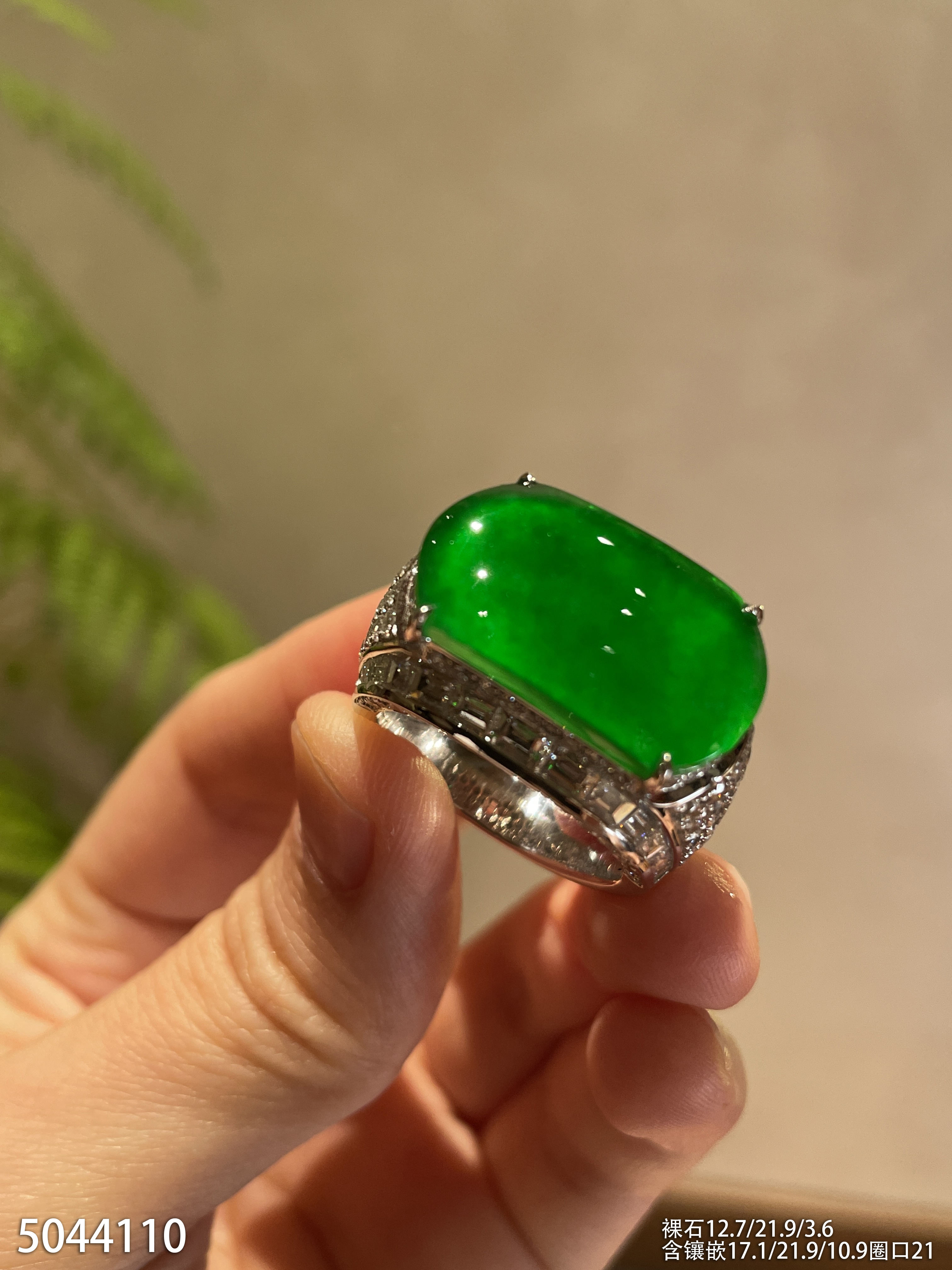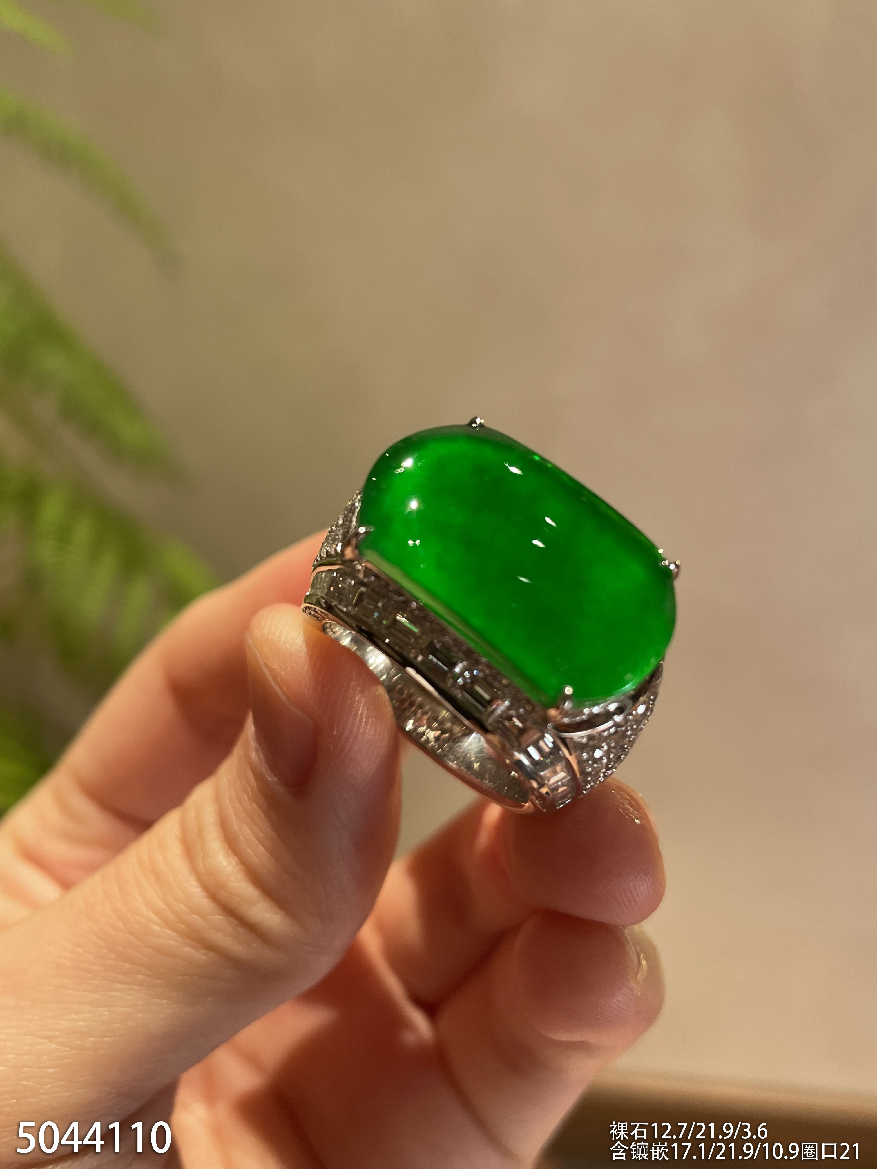 老坑玻璃种帝王绿无事牌戒指【5044110】具体价格微信咨询