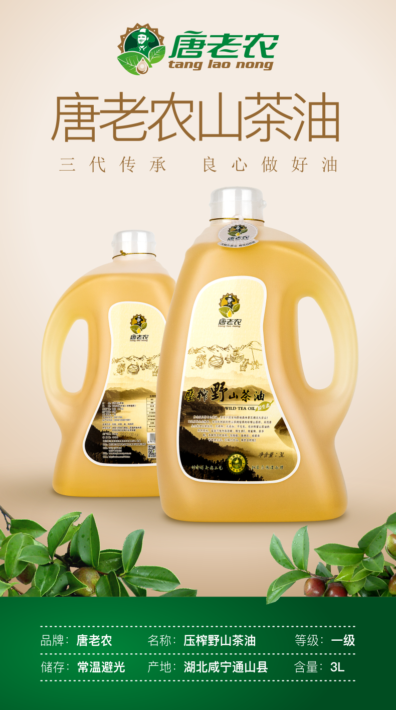 咸宁 通山唐老农山茶油3L家庭装