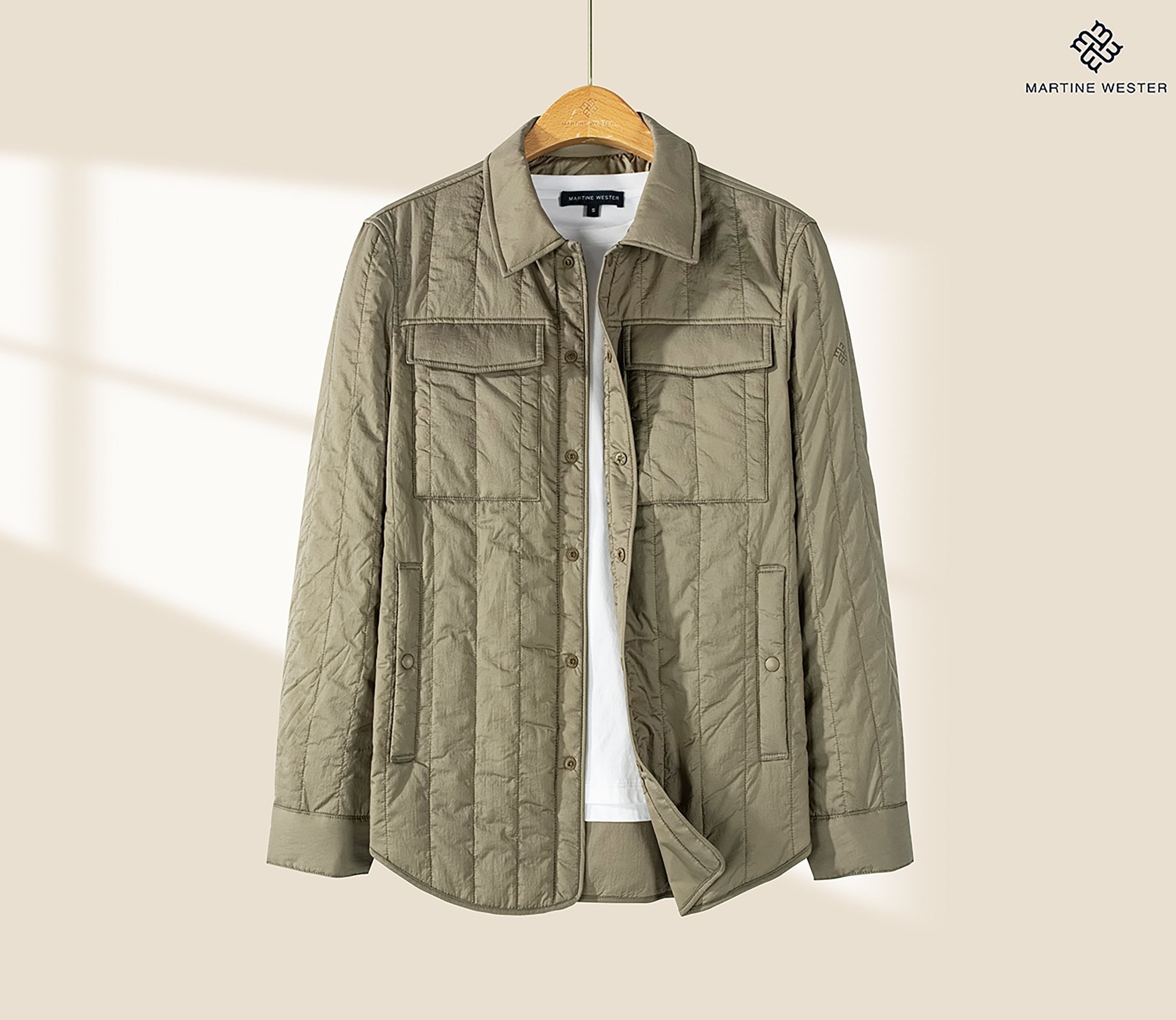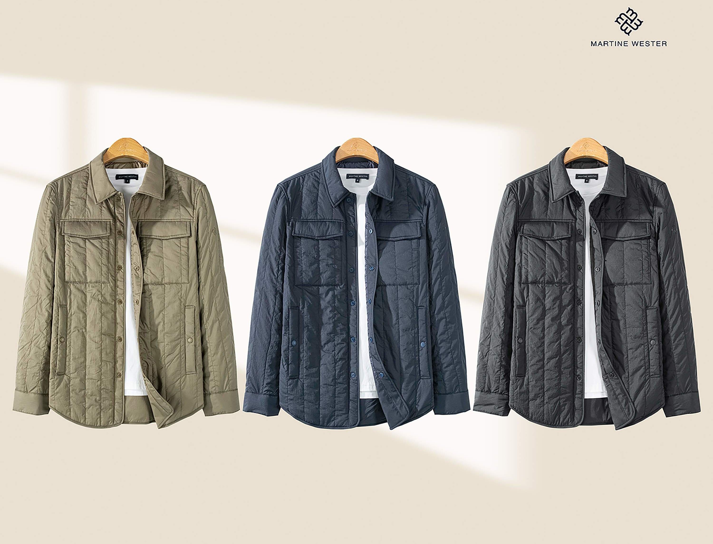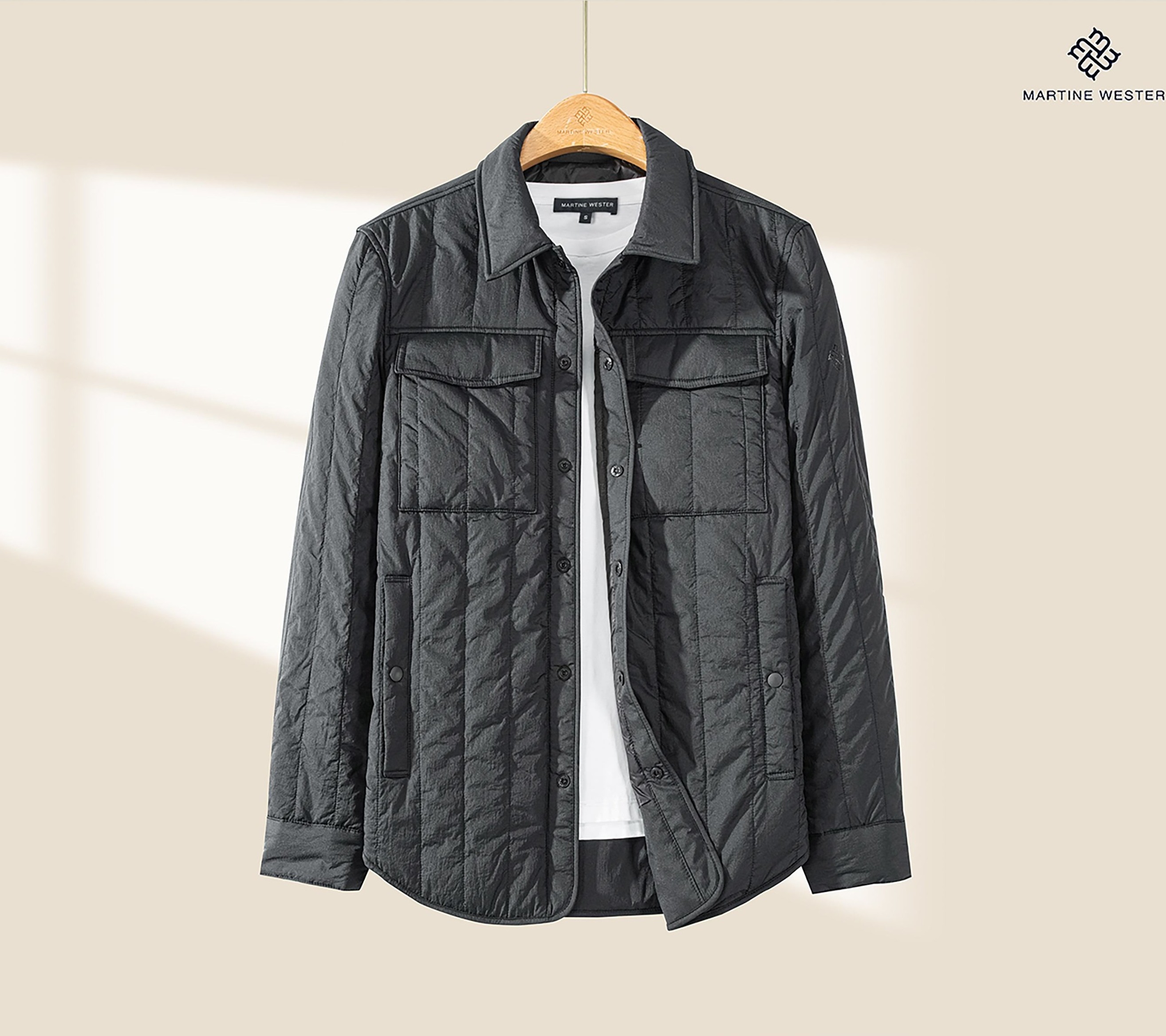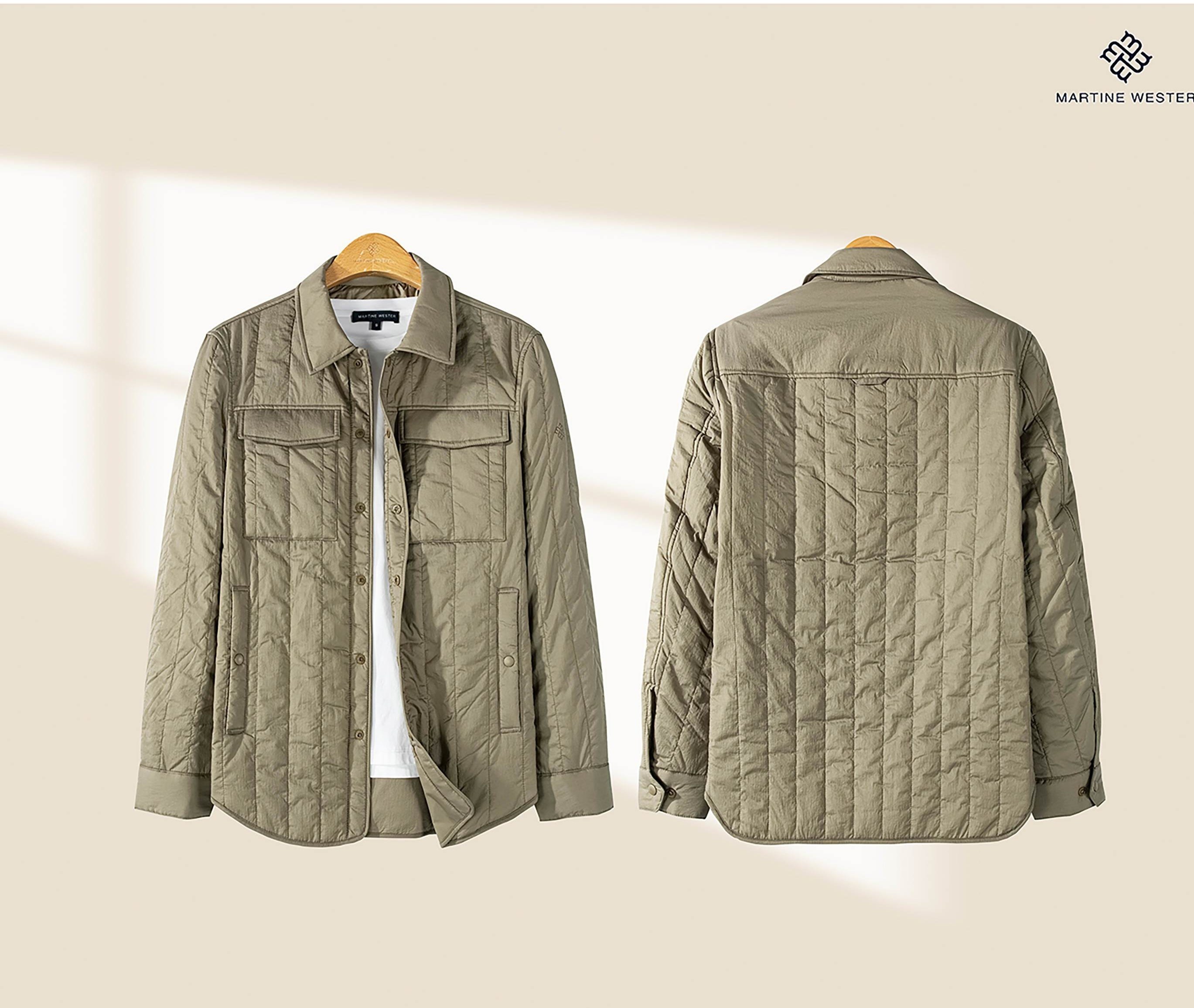 Martine Wester 男款新雪丽衬衣领夹棉外套