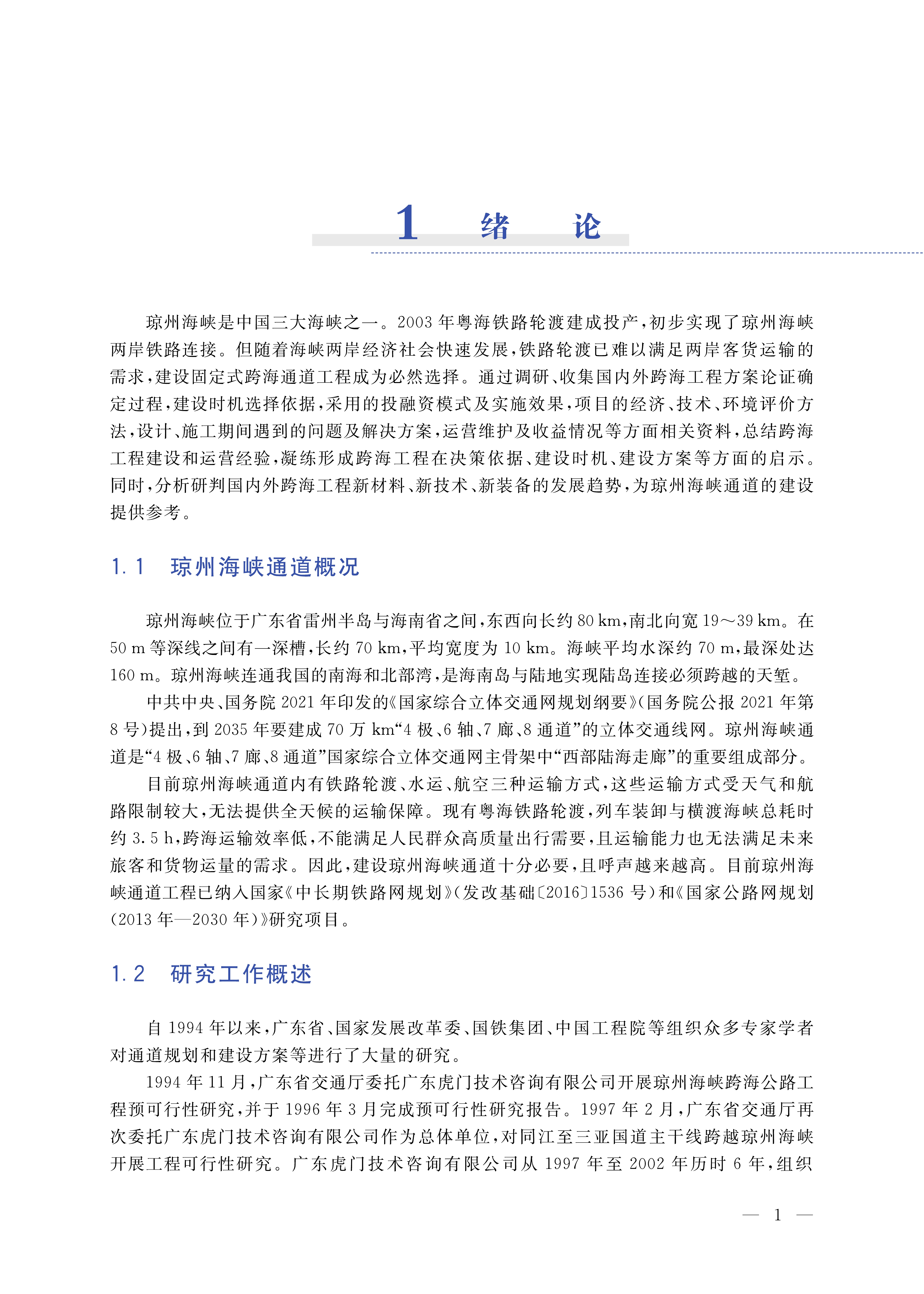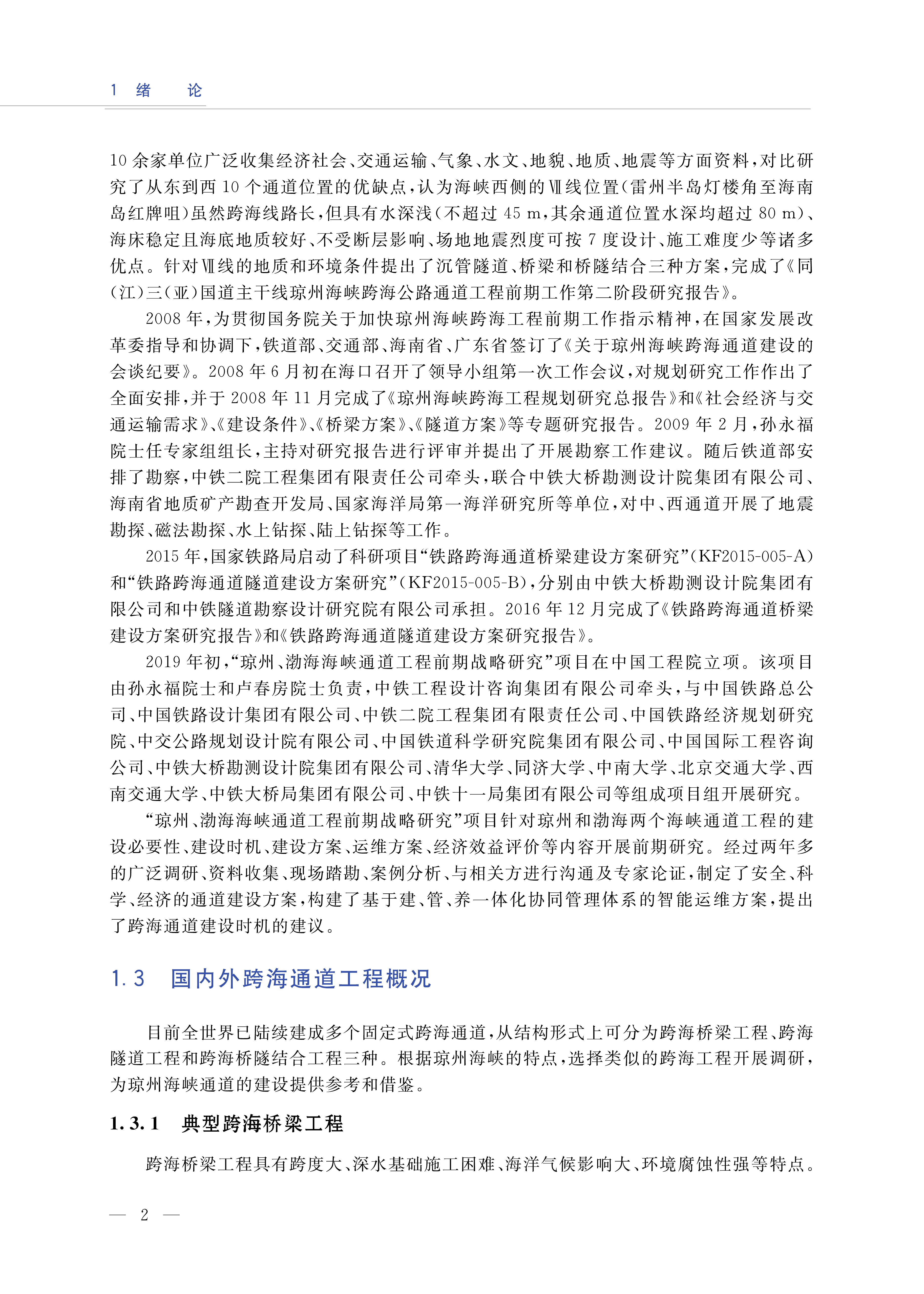 全书共10章。第1章介绍了琼州海峡通道概况,研究工作概述,国内外跨海通道建设现状、发展趋势和启示;第2章分析了琼州海峡通道的运输需求;第3章论证了通道建设的必要性和功能定位;第4章分析了通道建设的气象、水文、工程地质等条件;第5章研究了通道建设的位置和建设标准;第6章对比分析了通道建设的方案;第7章深入研究了推荐方案;第8章对建设方案进行了综合评价;第9章研究了通道的运维方案;第10章对通道建设提出了建议。