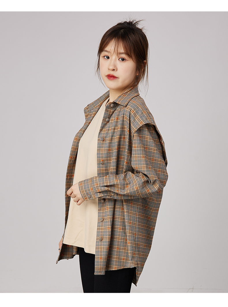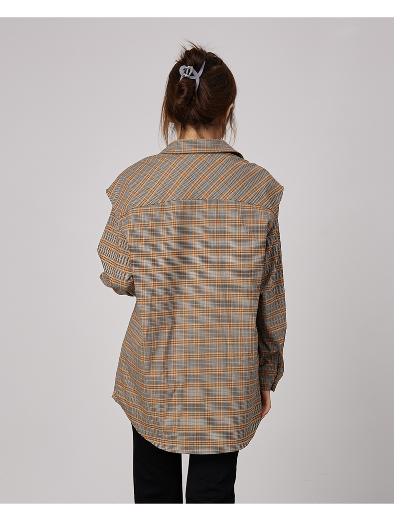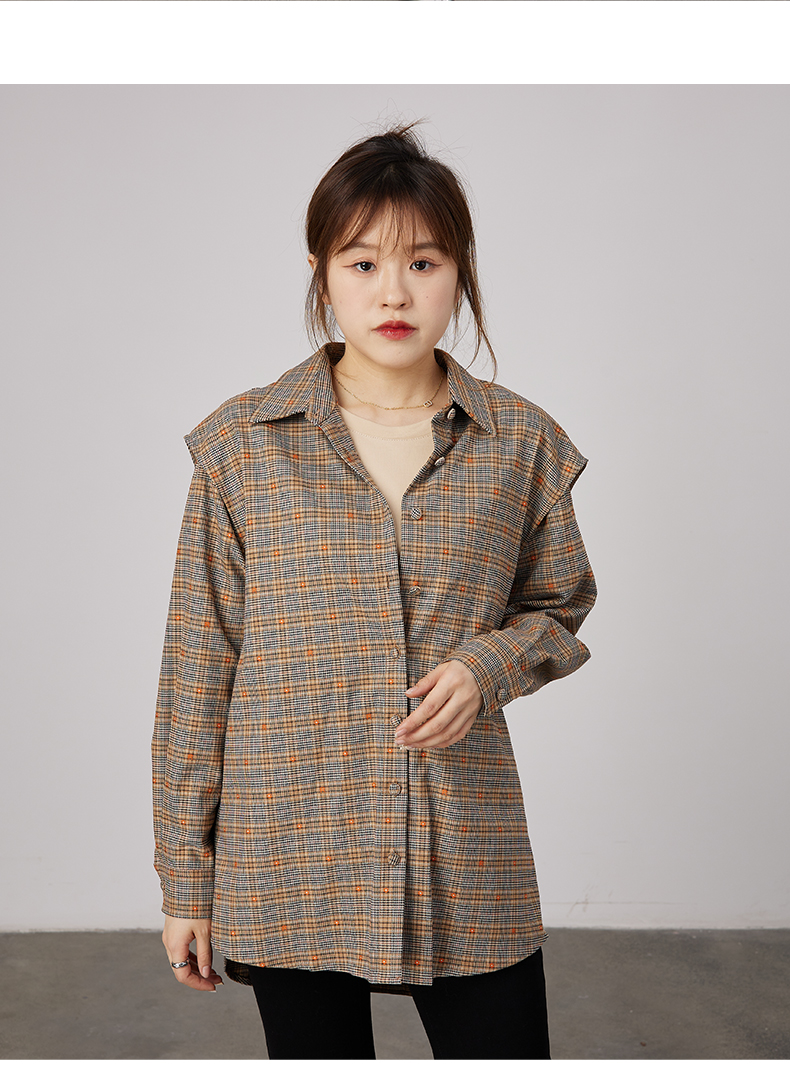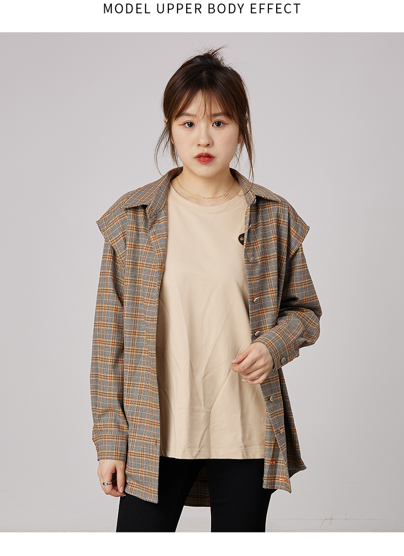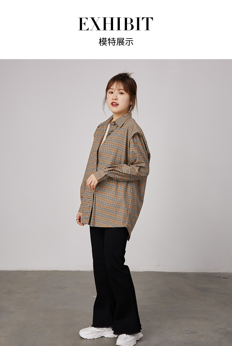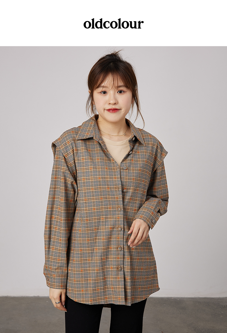 oldcolour2021秋商场同款宽松大码休闲格子衬衫两件套N34013438