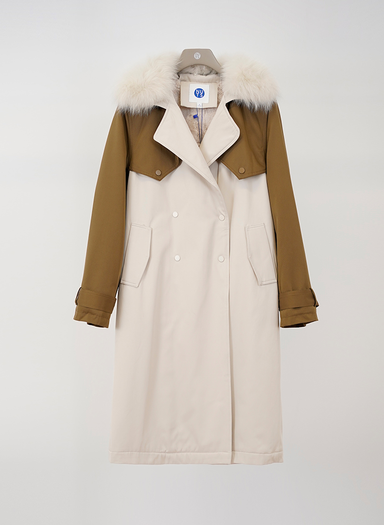 NUTS那时商场同款秋冬新款时尚休闲狐狸毛拼色长外套女241043453