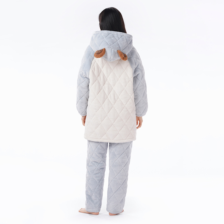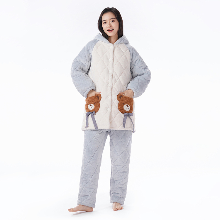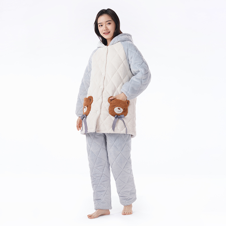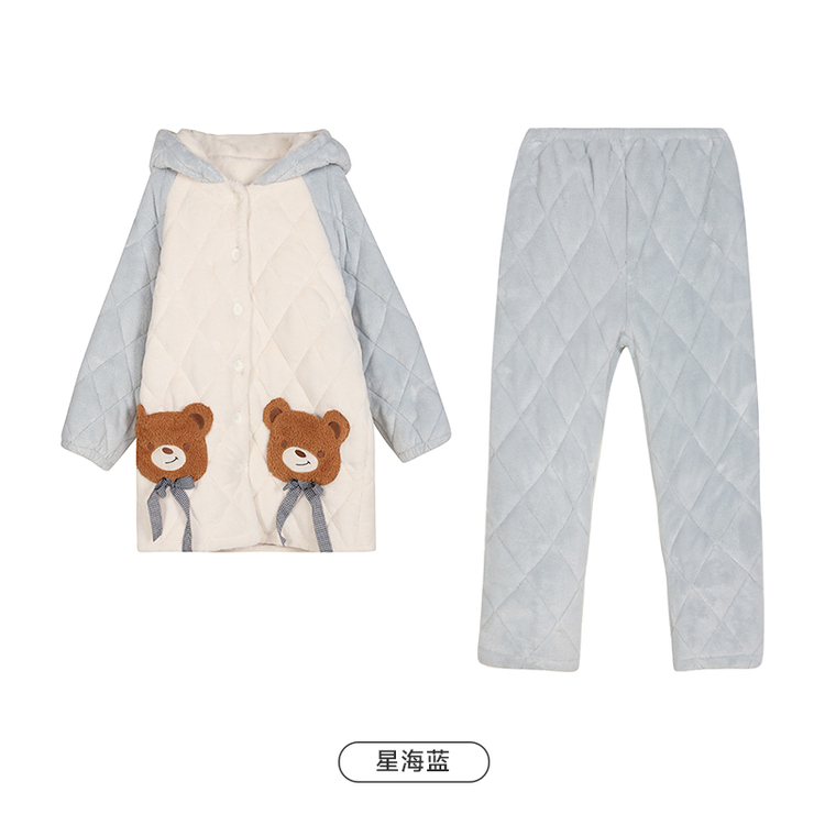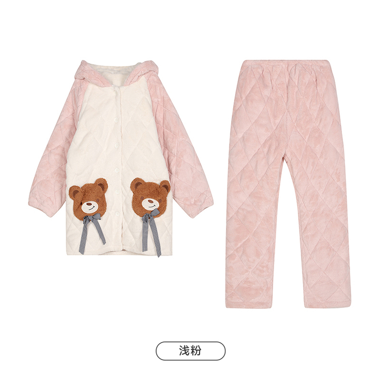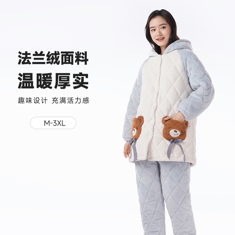 都市丽人法兰绒夹棉睡衣女士家居服长袖长裤加厚夹棉套装LHH0C7