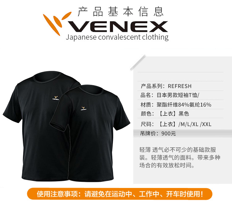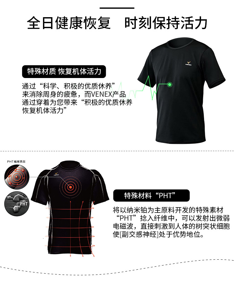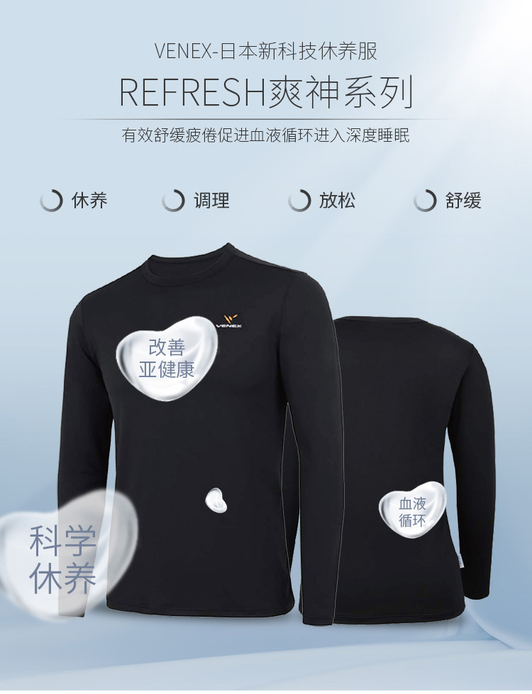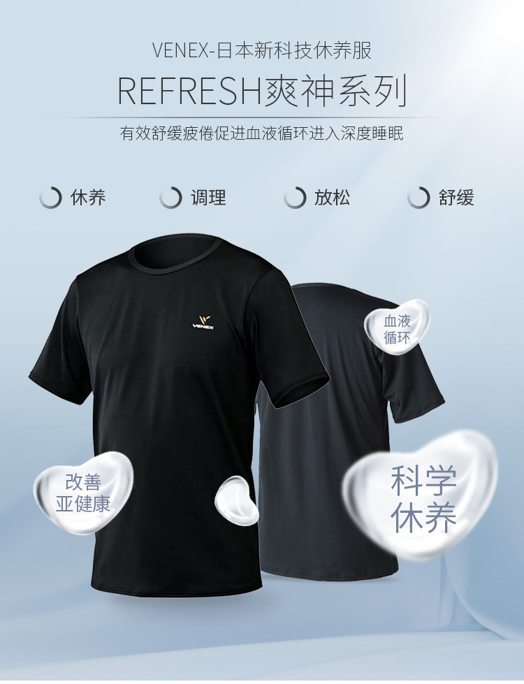 VENEX休养服居家系列男款短袖上衣 舒缓疲倦促进深睡眠 改善亚健康