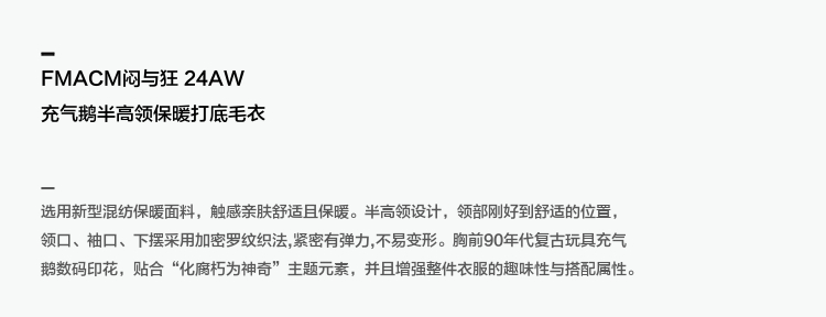 FMACM/ZZS2418/ 充气鹅半高领保暖针织毛衣