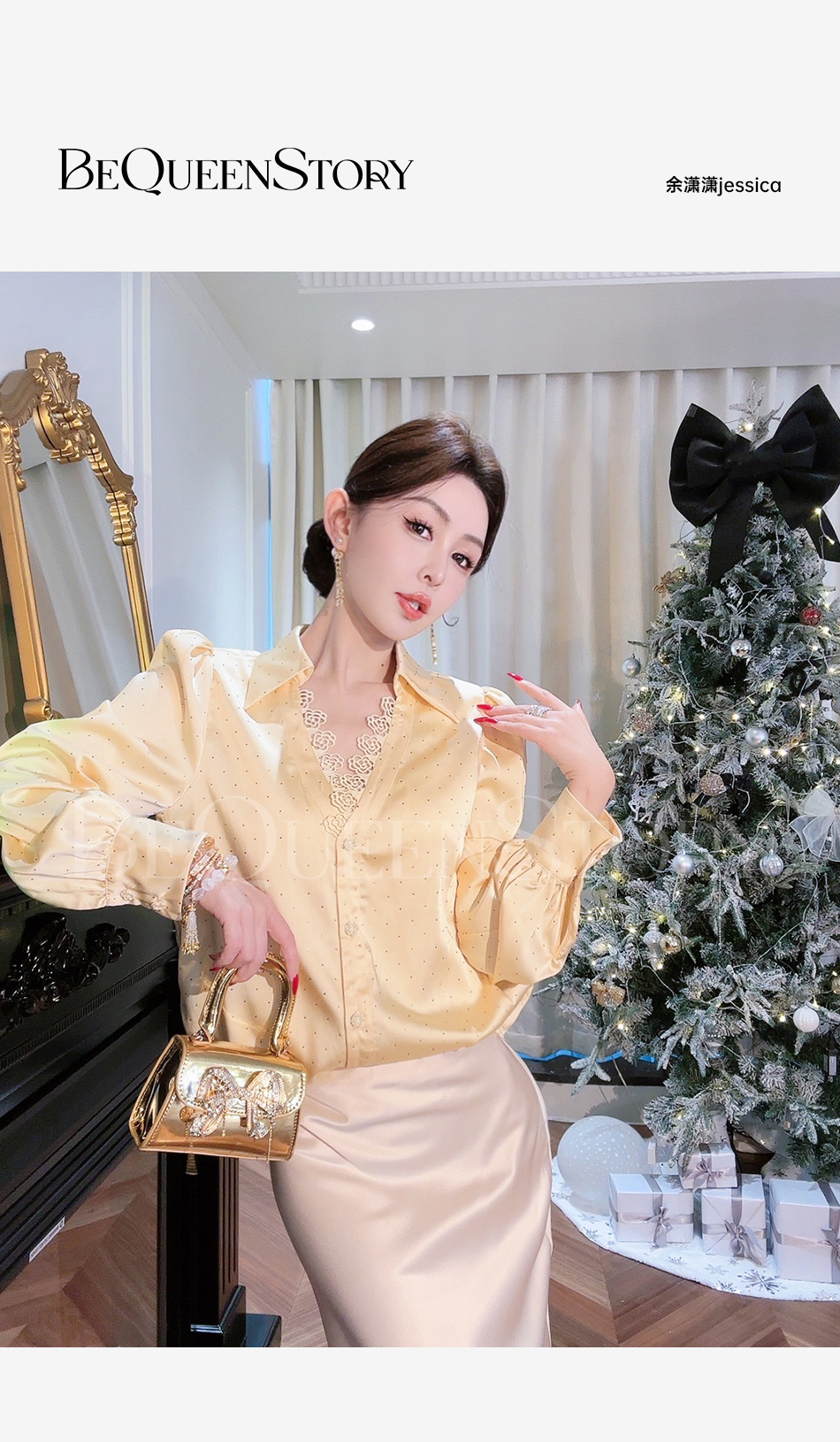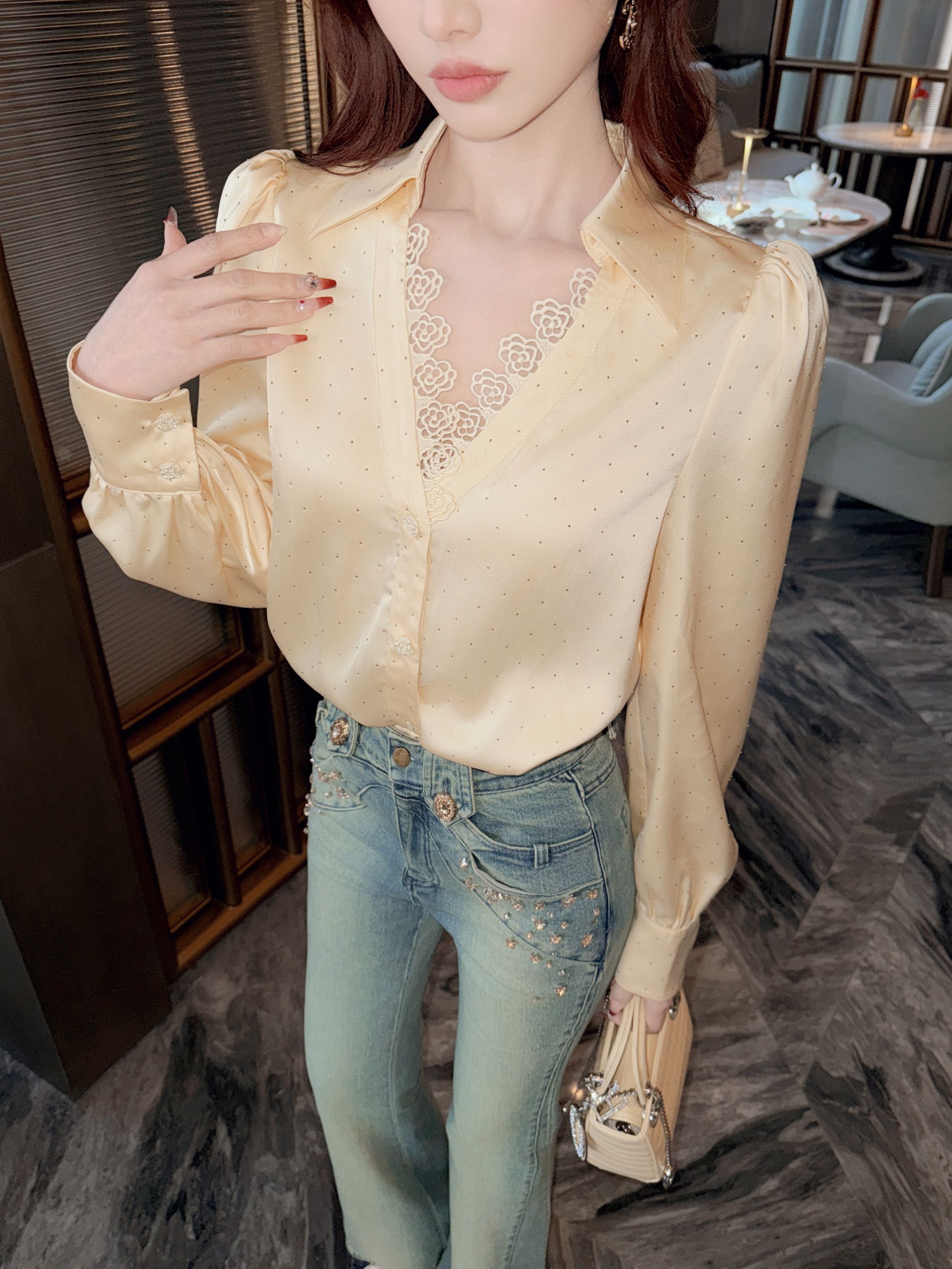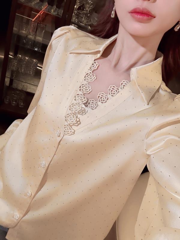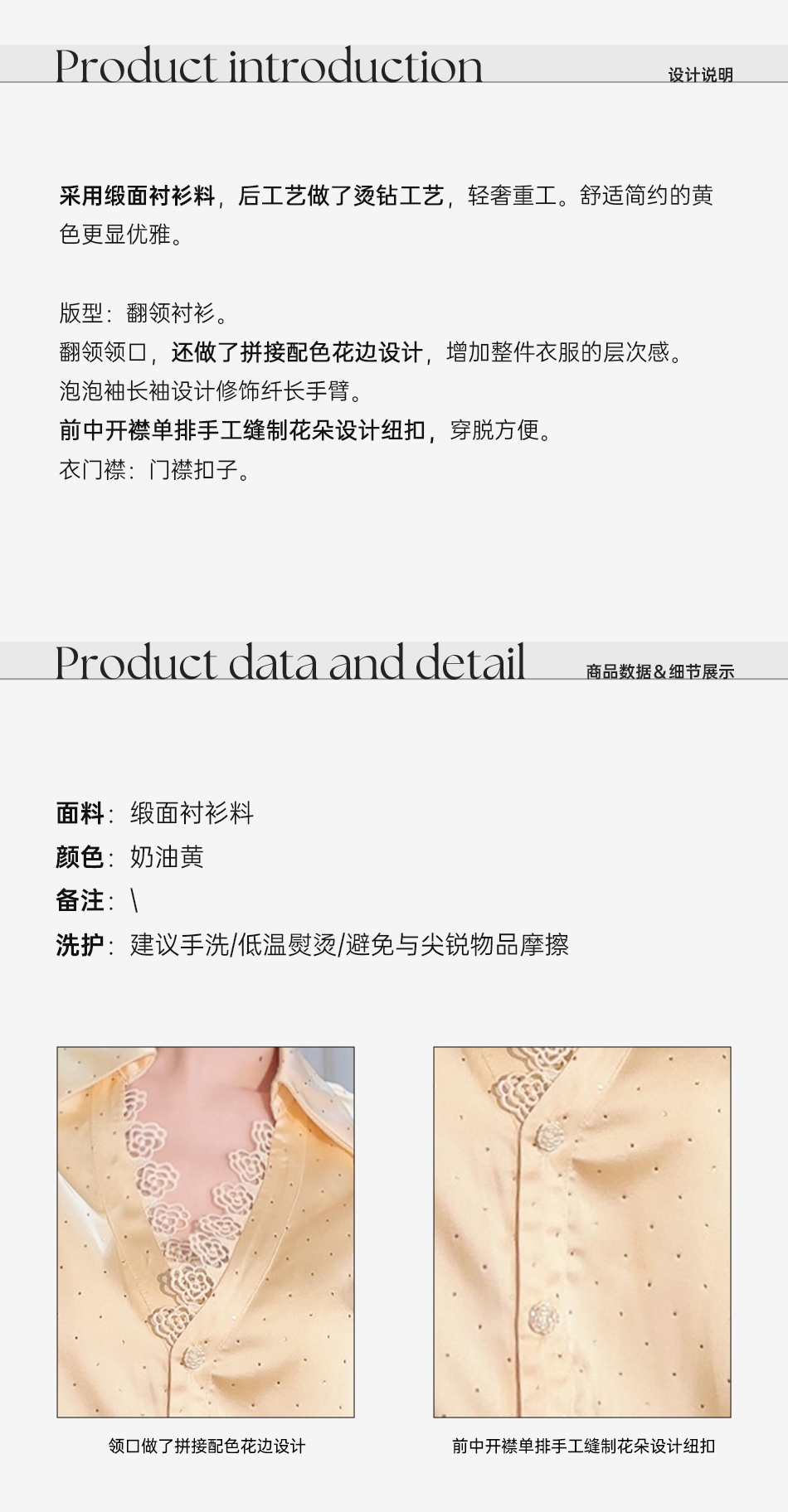 【孤品样衣,不退不换】【浪漫春波】2025年早春新品轻奢重工烫钻拼接花边翻领衬衫