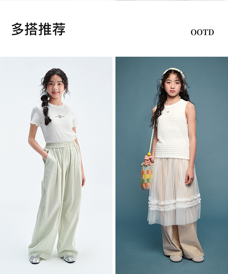 笛莎Deesha青少年女童裤子2025夏季女童阔腿裤