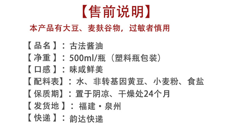 【古法酱油】全部采用非转基因全大豆