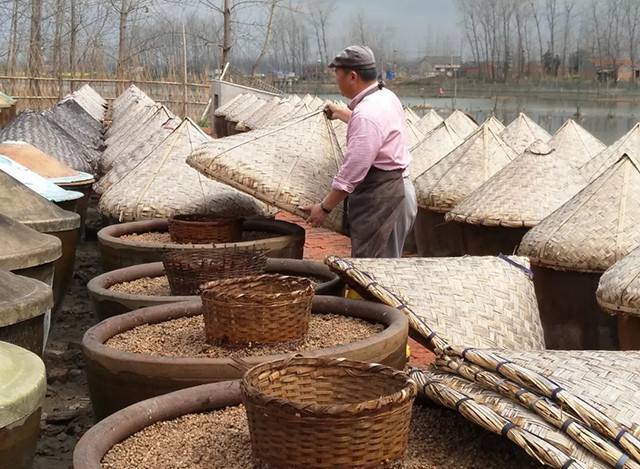 采用传统大缸天然日晒发酵