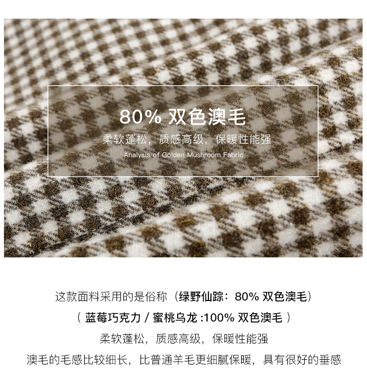 产品信息:绿野仙踪80%双色澳毛 蓝莓巧克力,蜜桃乌龙100%双色澳毛 半裙:羊毛 注意事项:双面呢请干洗