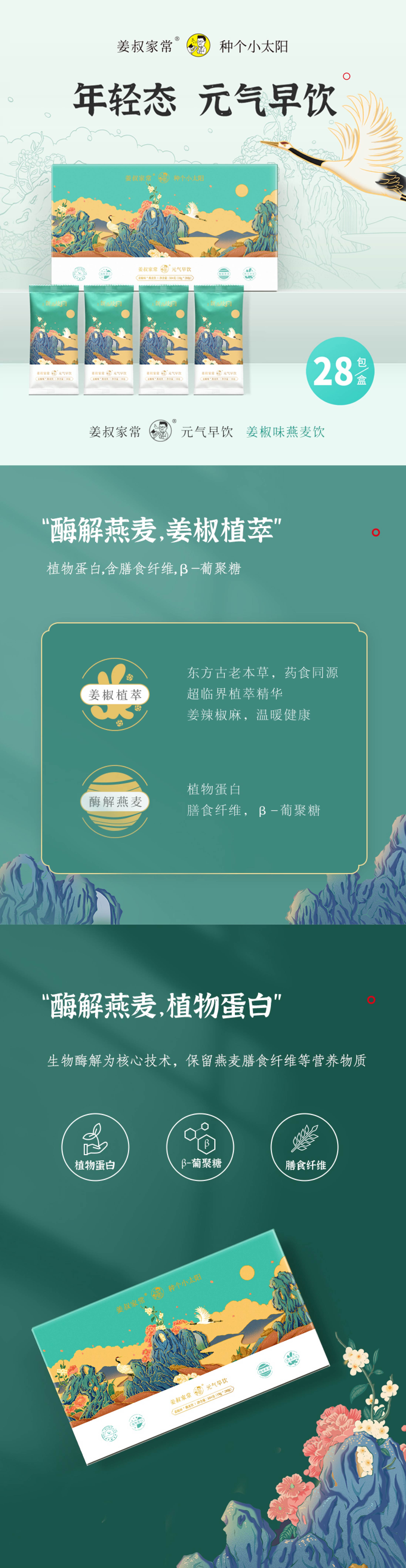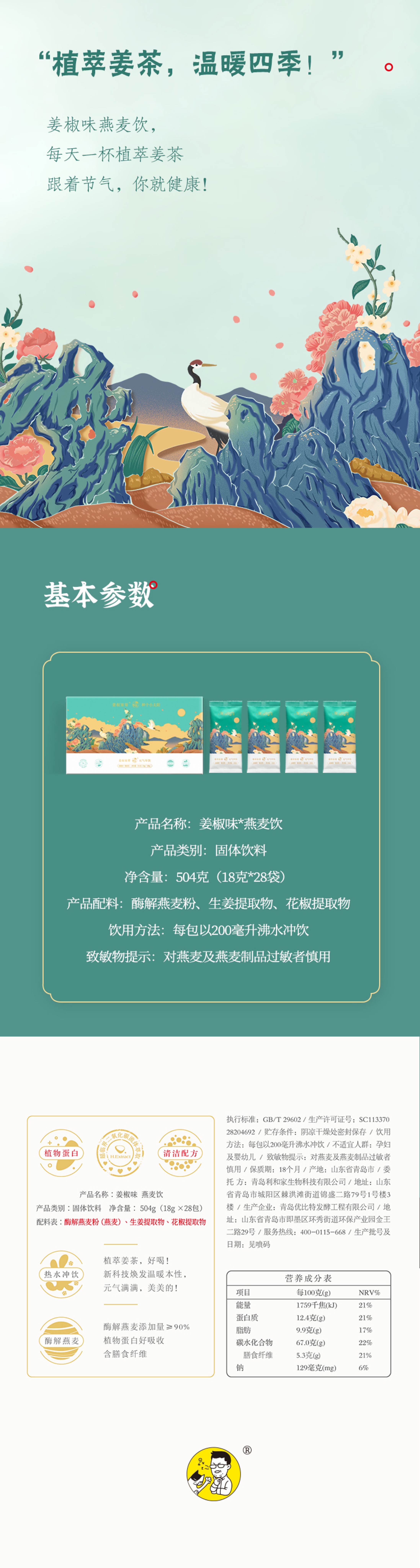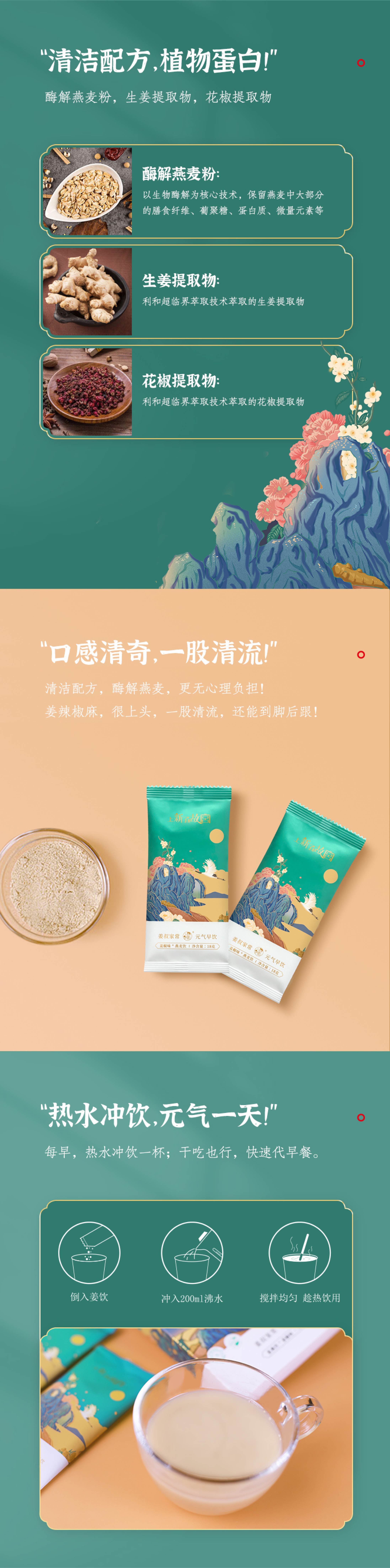 2、酶解燕麦+生姜花椒精华,植物蛋白+膳食纤维,健康饱腹无负担;