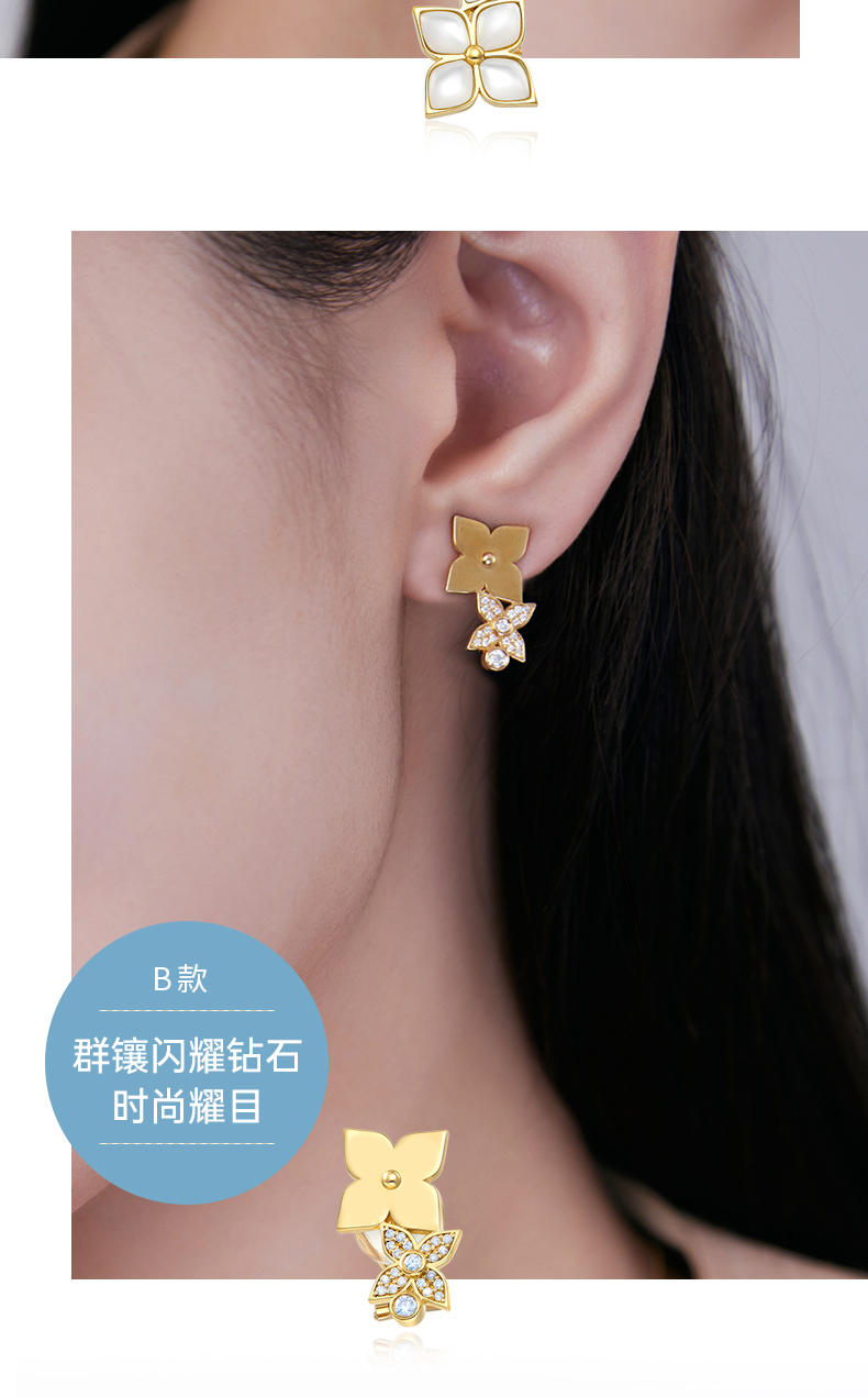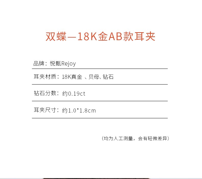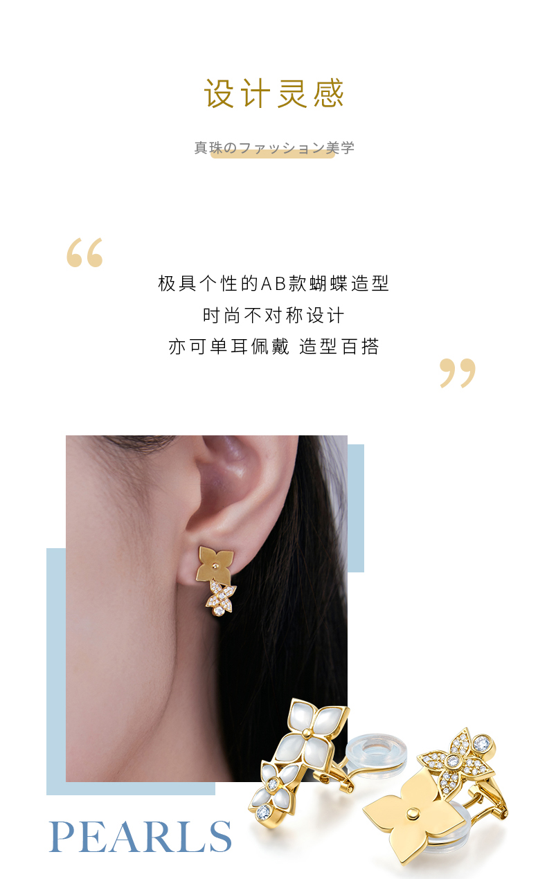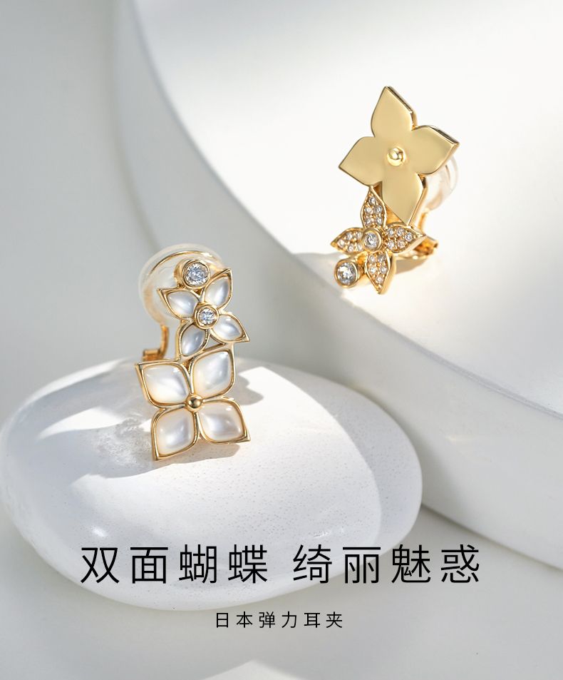 【天猫同款】悦甄 双蝶-18k金贝母钻石耳夹