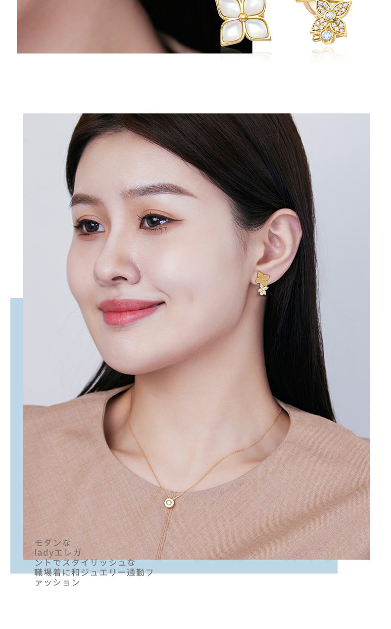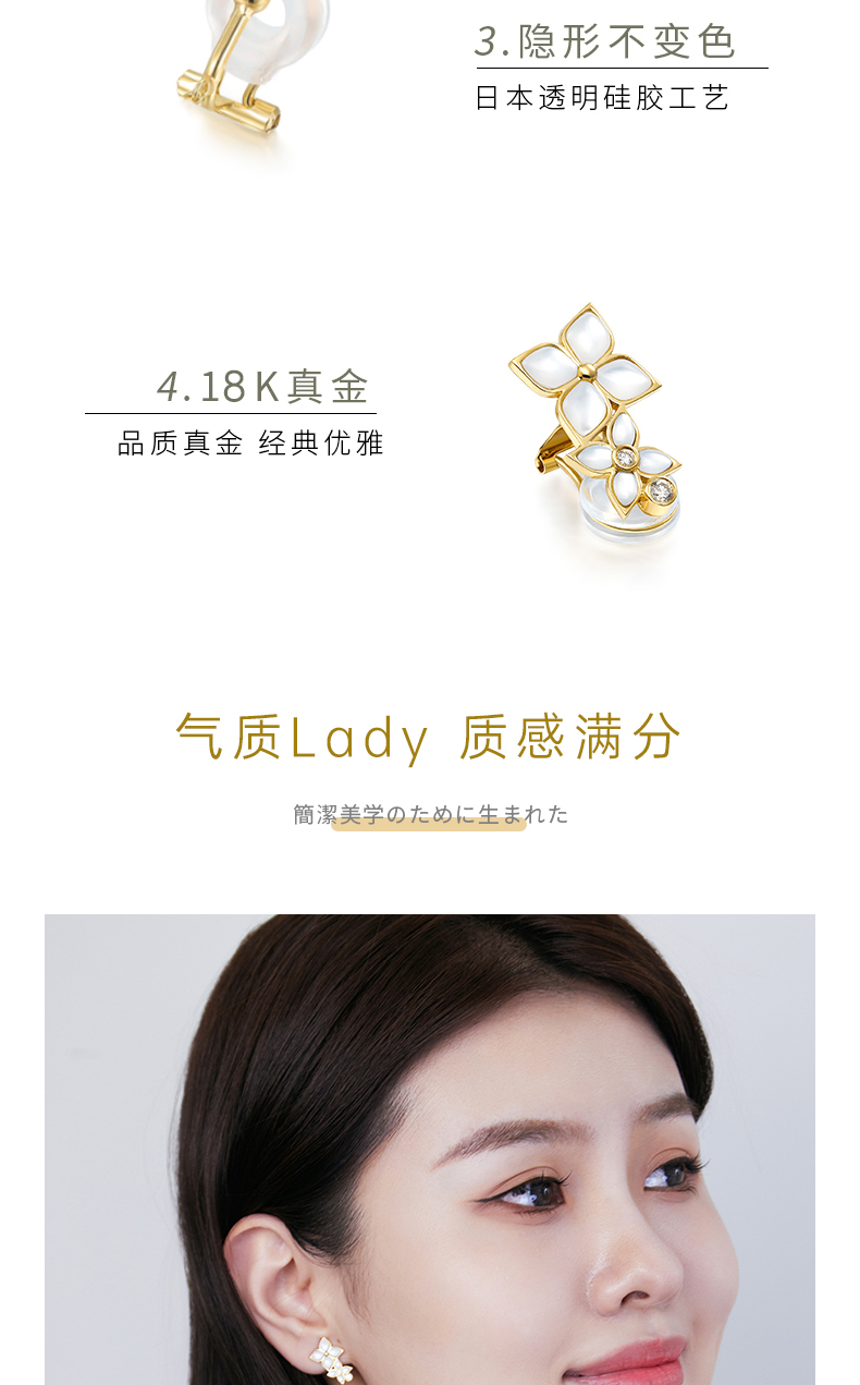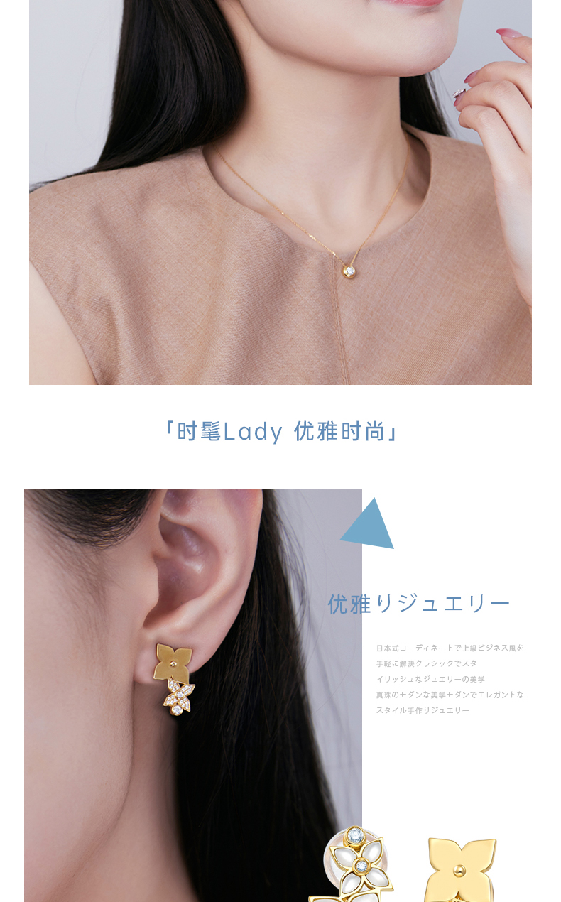 【天猫同款】悦甄 双蝶-18k金贝母钻石耳夹