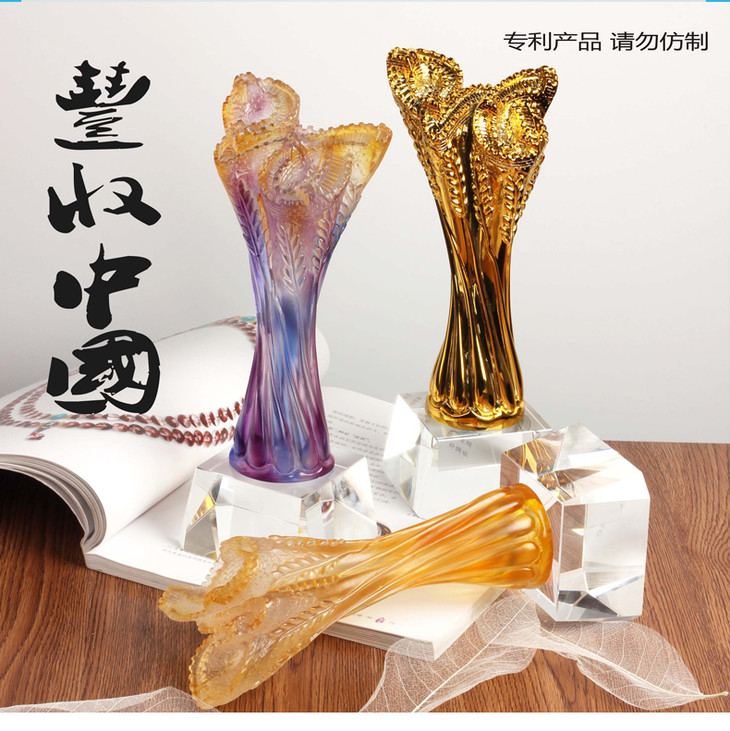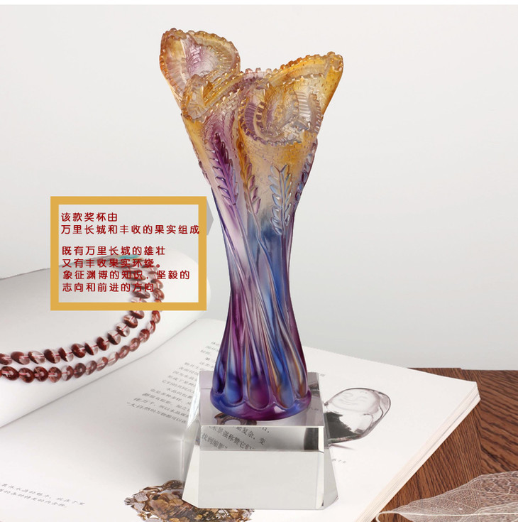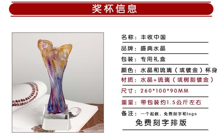 丰收中国奖杯定制镀金奖杯纪念品定做奖杯创意琉璃奖杯刻字