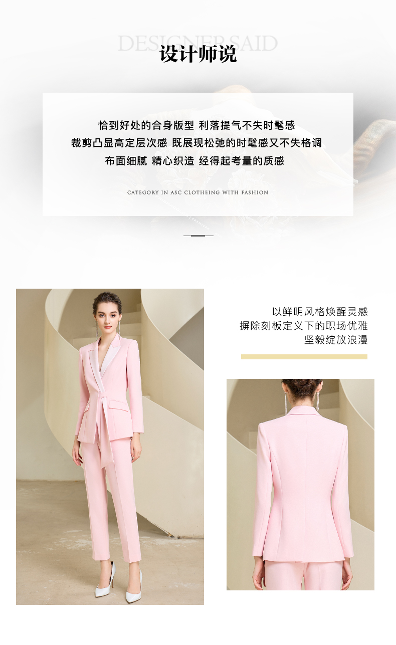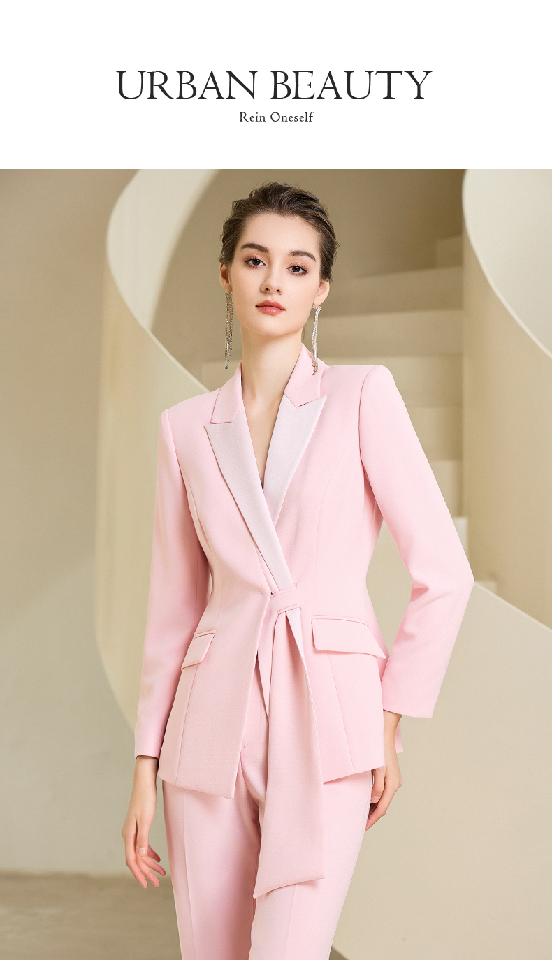 IWY/粉色长袖西装套装女新款主持人职业装气质高级感外套女233010CP1