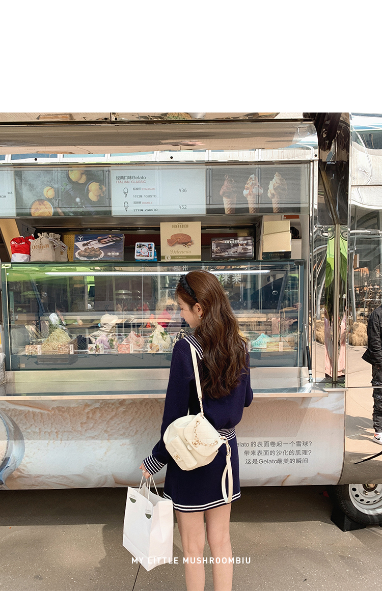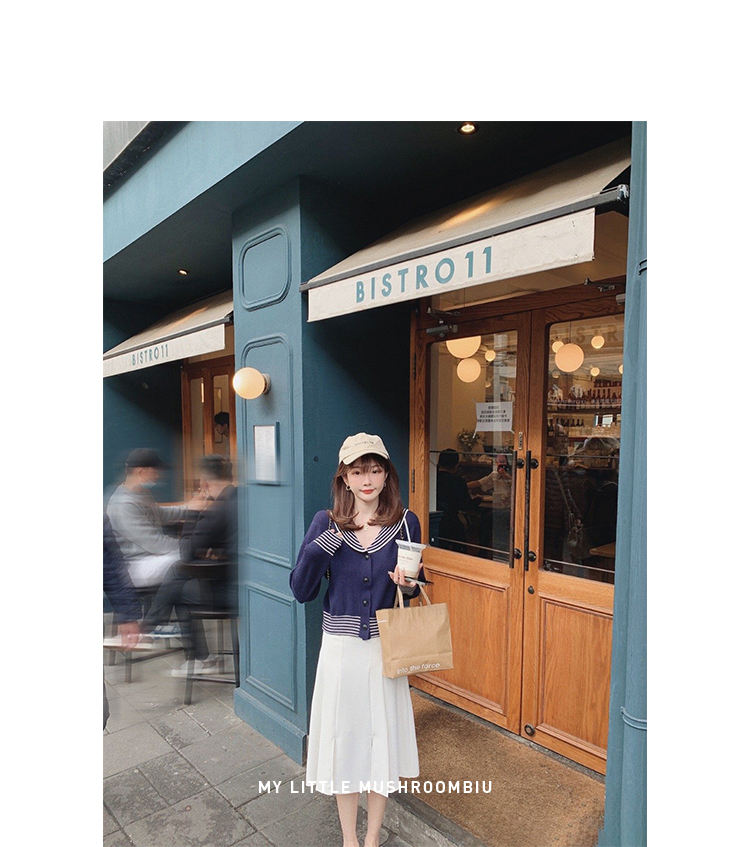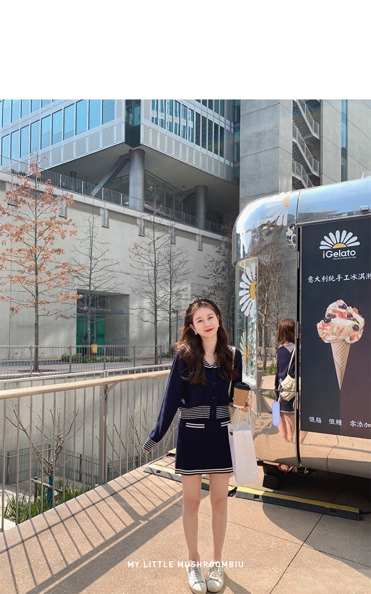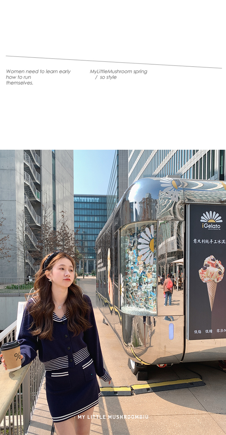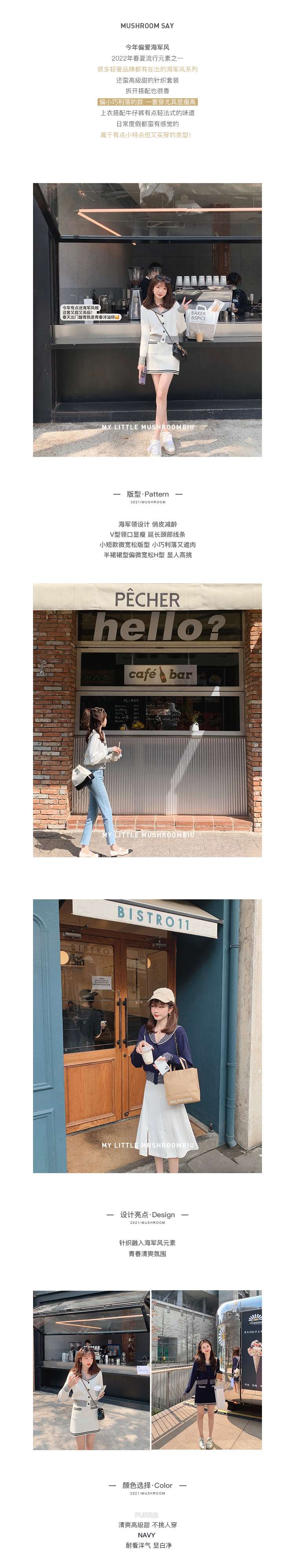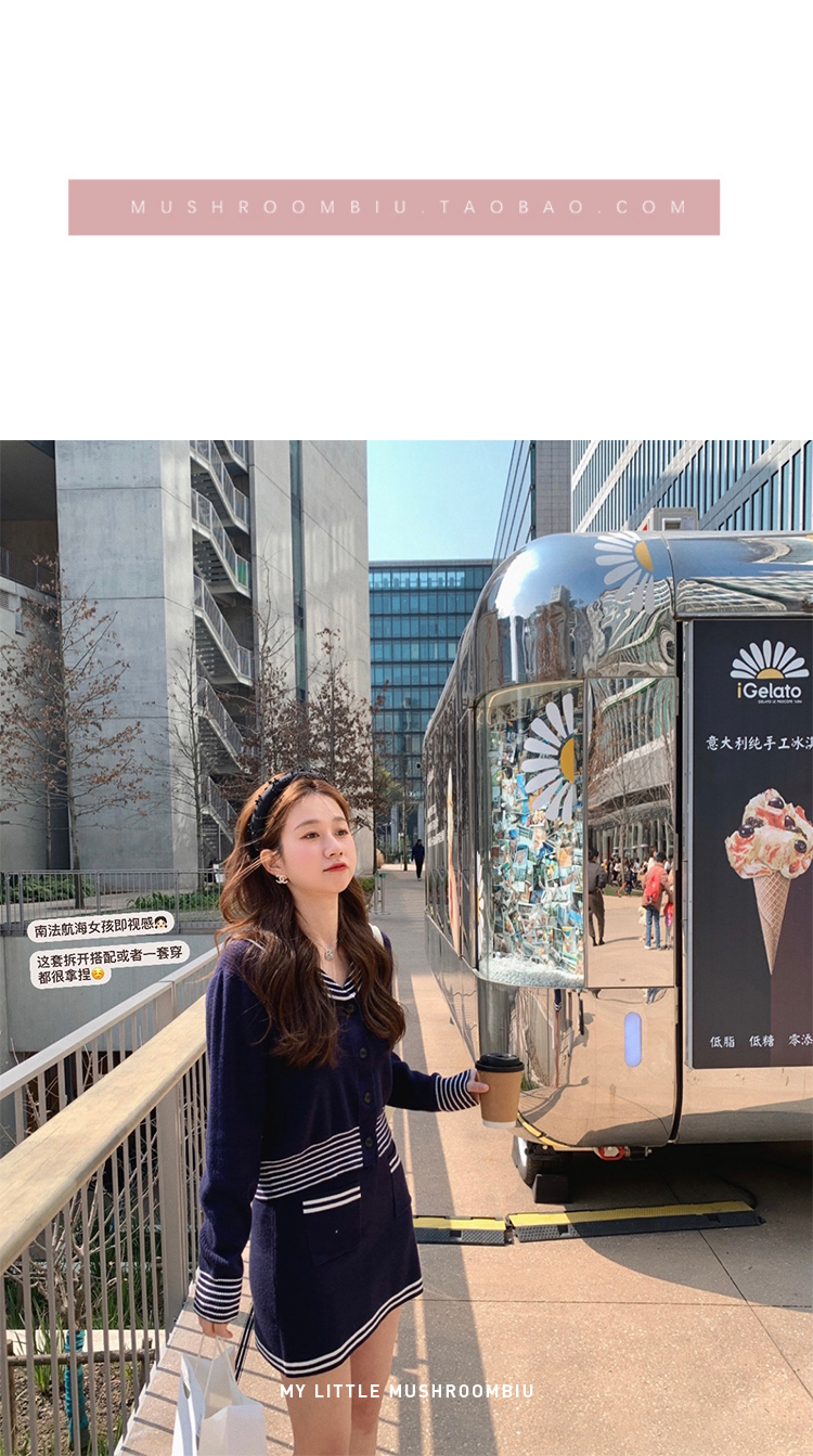 不退不换 断码清仓 金蘑菇菇【南法航海少女】今年偏爱海军风!氧气少女减龄针织半裙