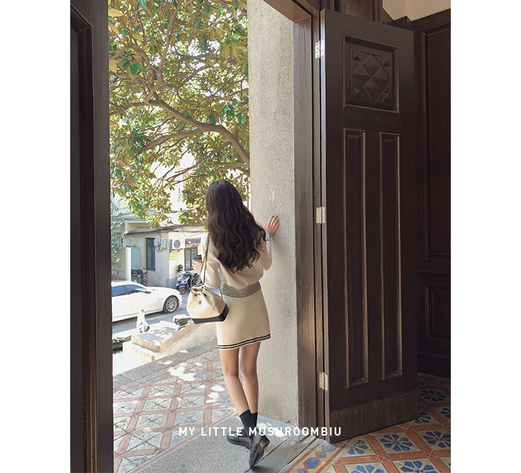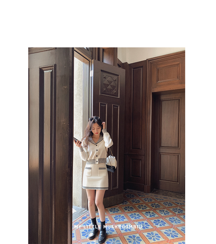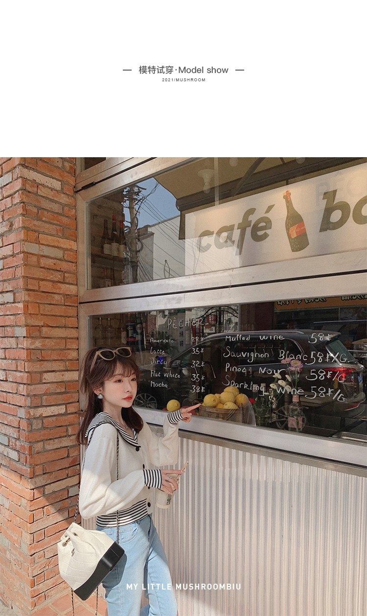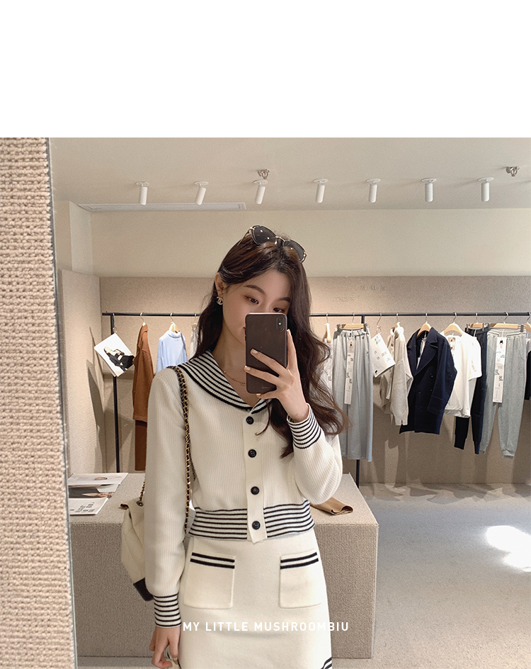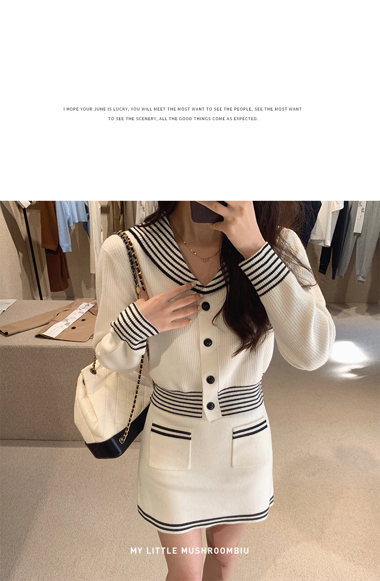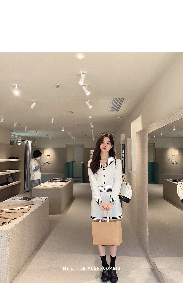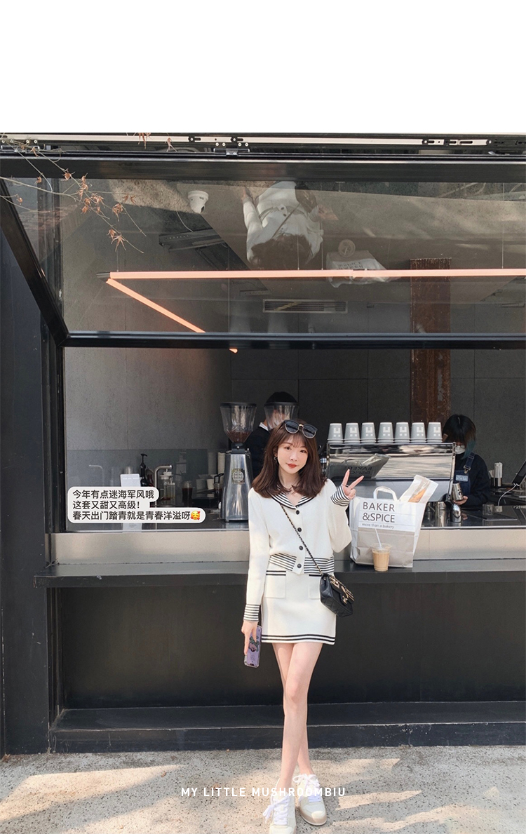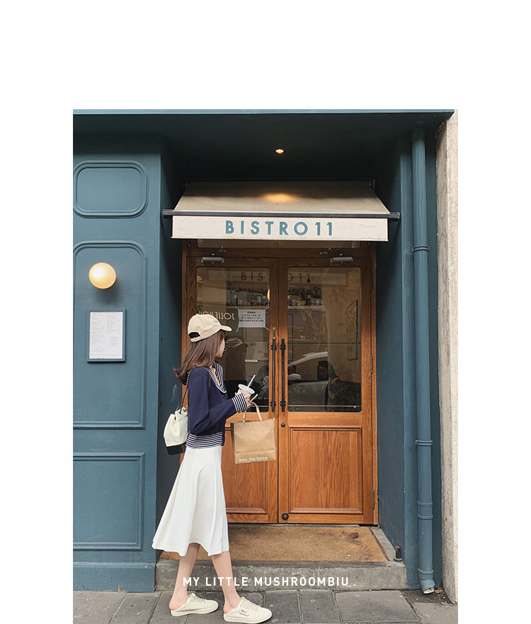 不退不换 断码清仓 金蘑菇菇【南法航海少女】今年偏爱海军风!氧气少女减龄针织半裙