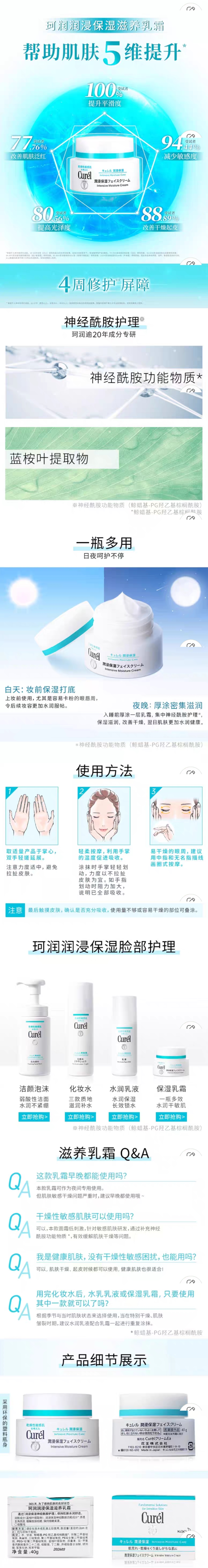 1F【curel】珂润润浸保湿滋养乳霜40g*2敏感肌保湿补水神经酰胺护理【自提需下单三日后到服务台提货】