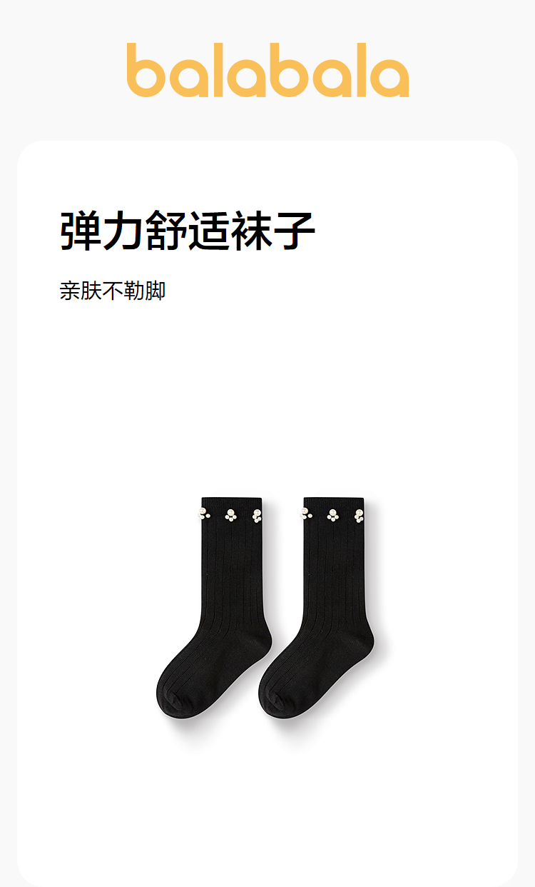 【商场同款】巴拉巴拉女童袜子秋新品儿童中筒珍珠袜不勒脚单双装