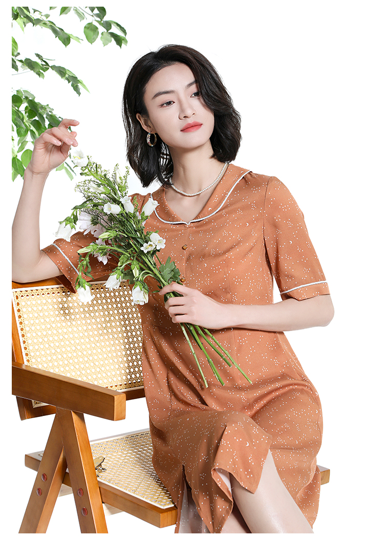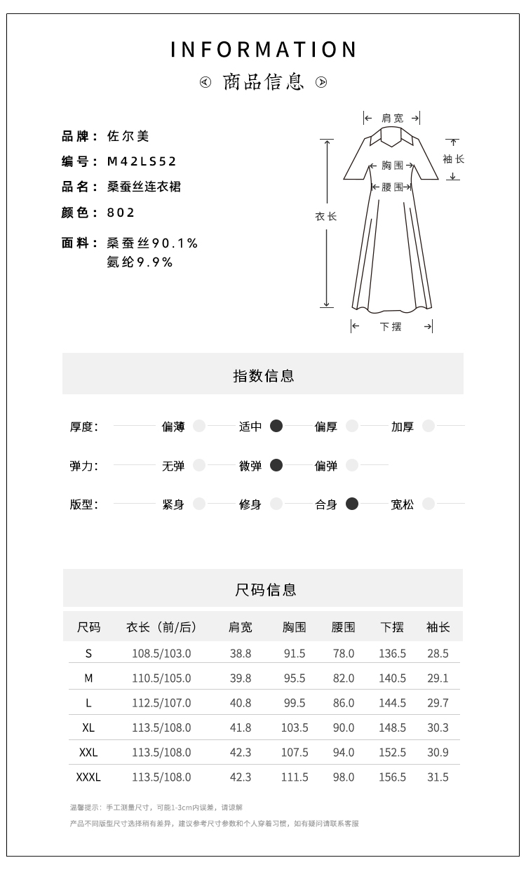 佐尔美夏季新款时尚气质桑蚕丝短袖连衣裙女M42LS52