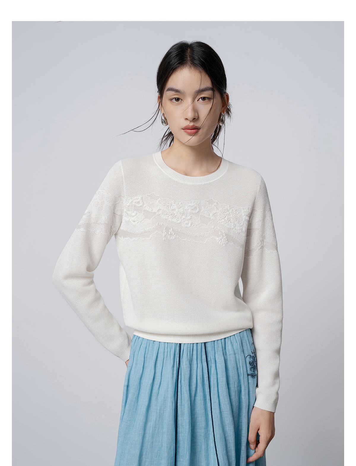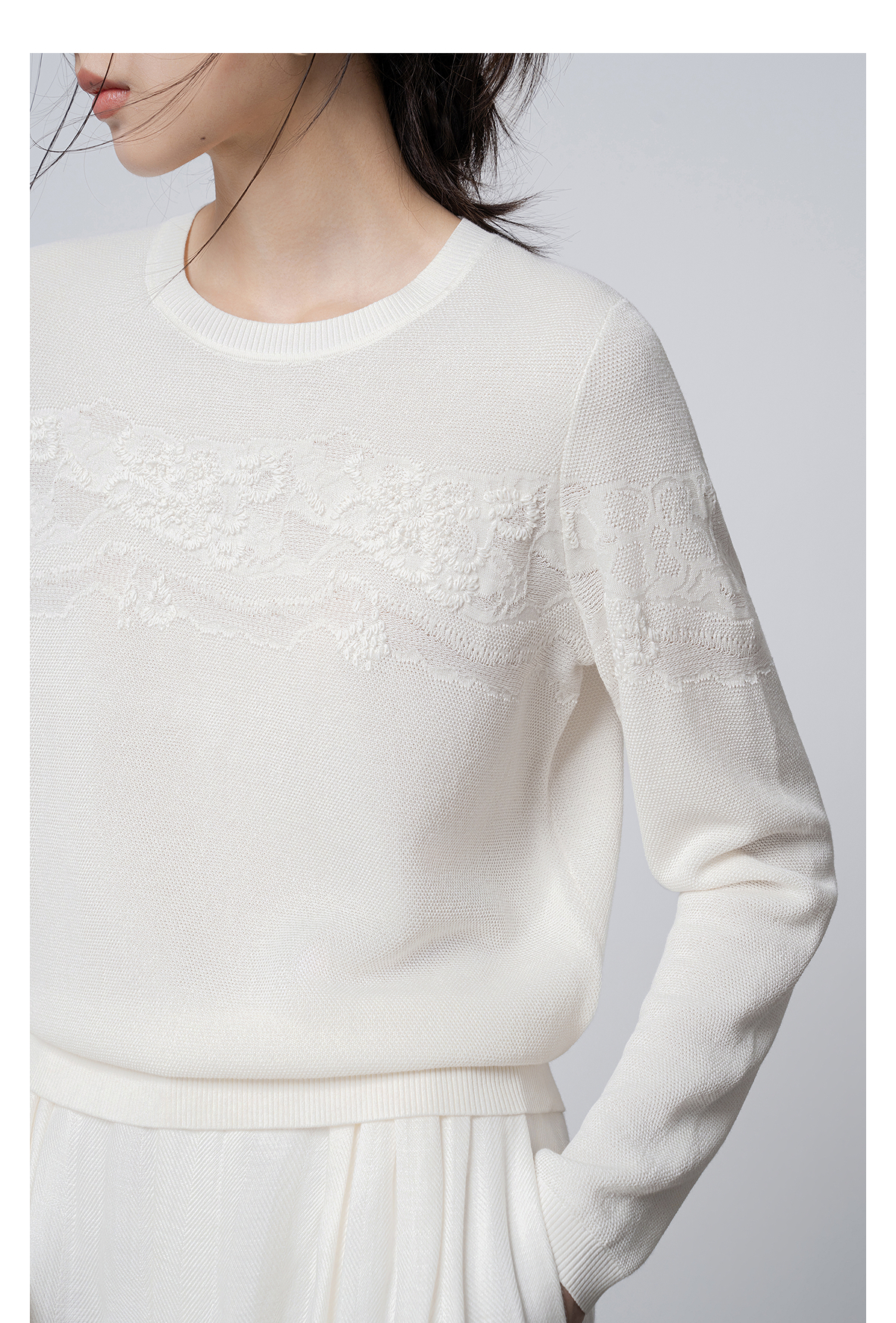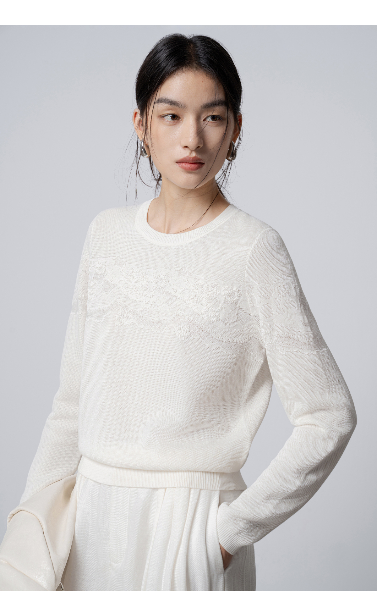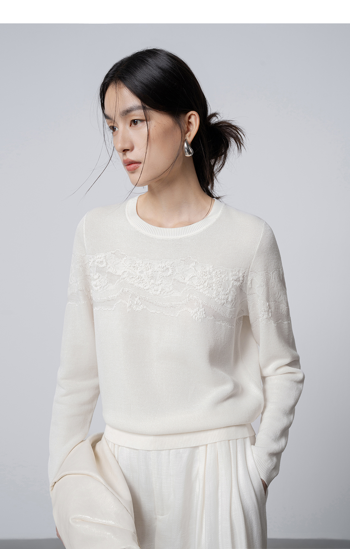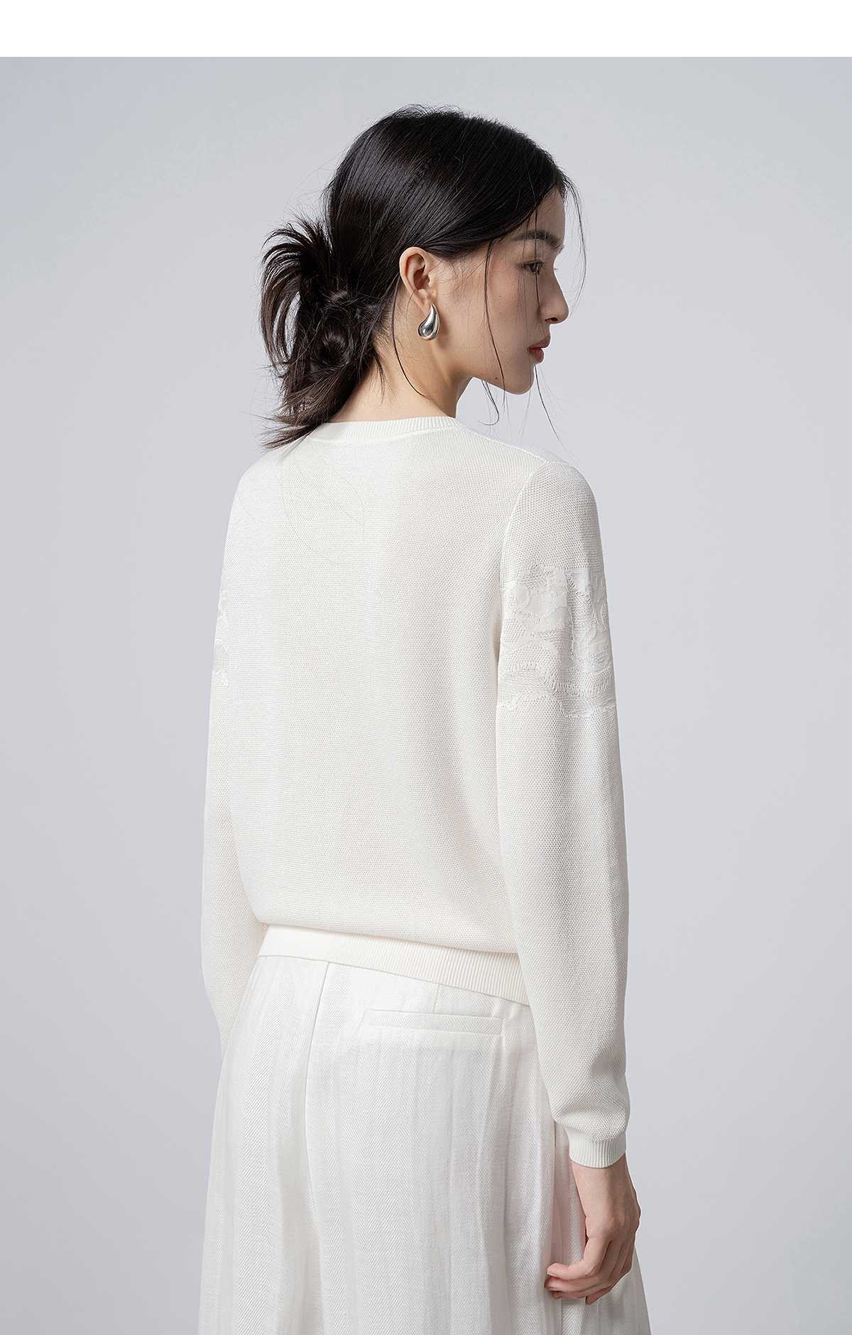 【林栖设计小店】手工绣花|米白优雅百搭气质2026春新款宽松毛织上衣1961094
