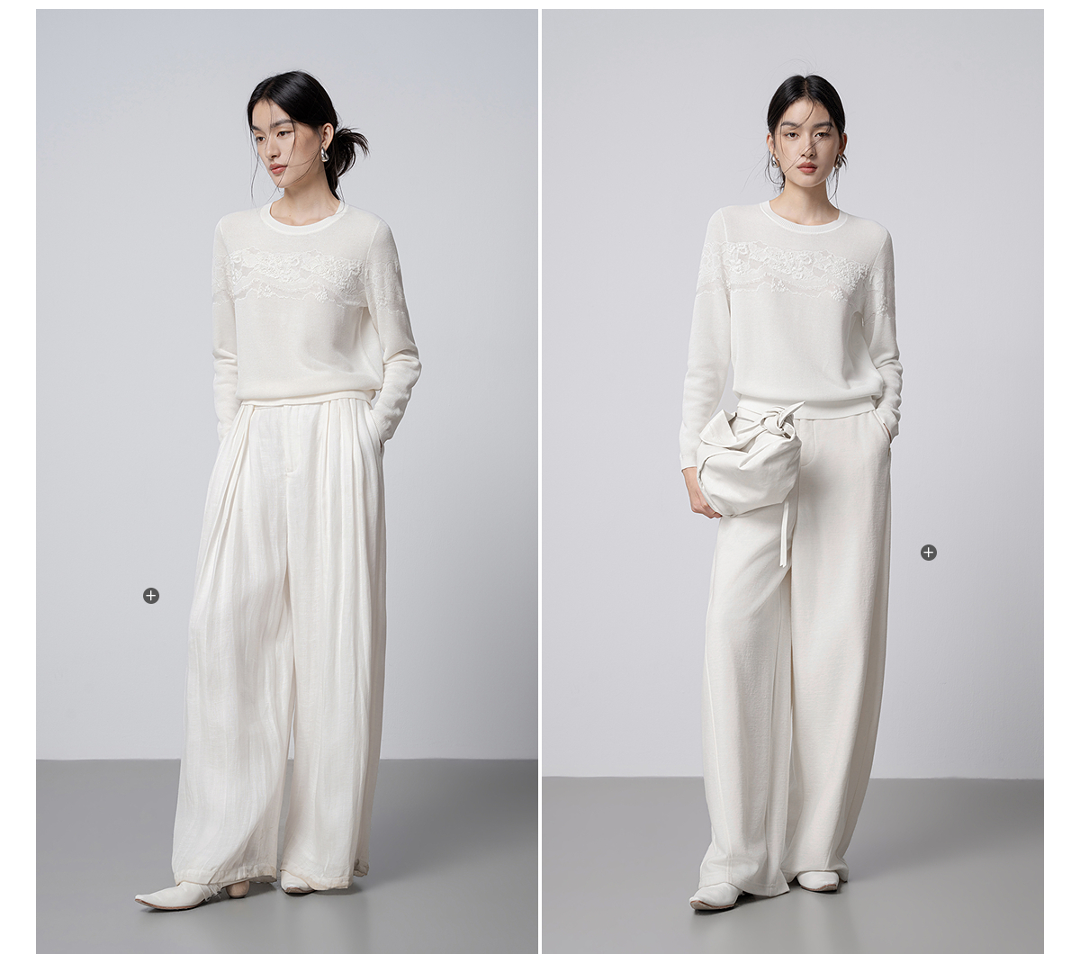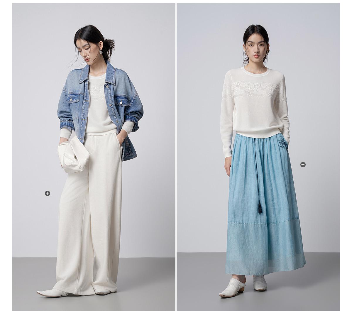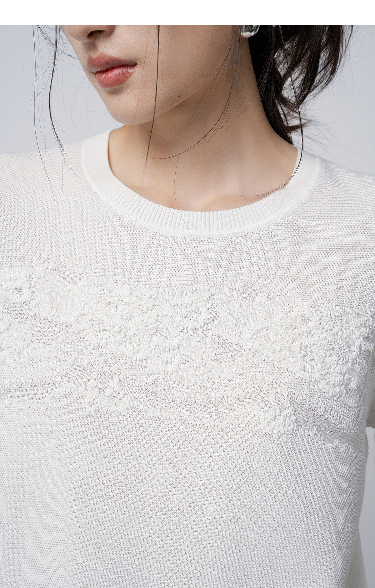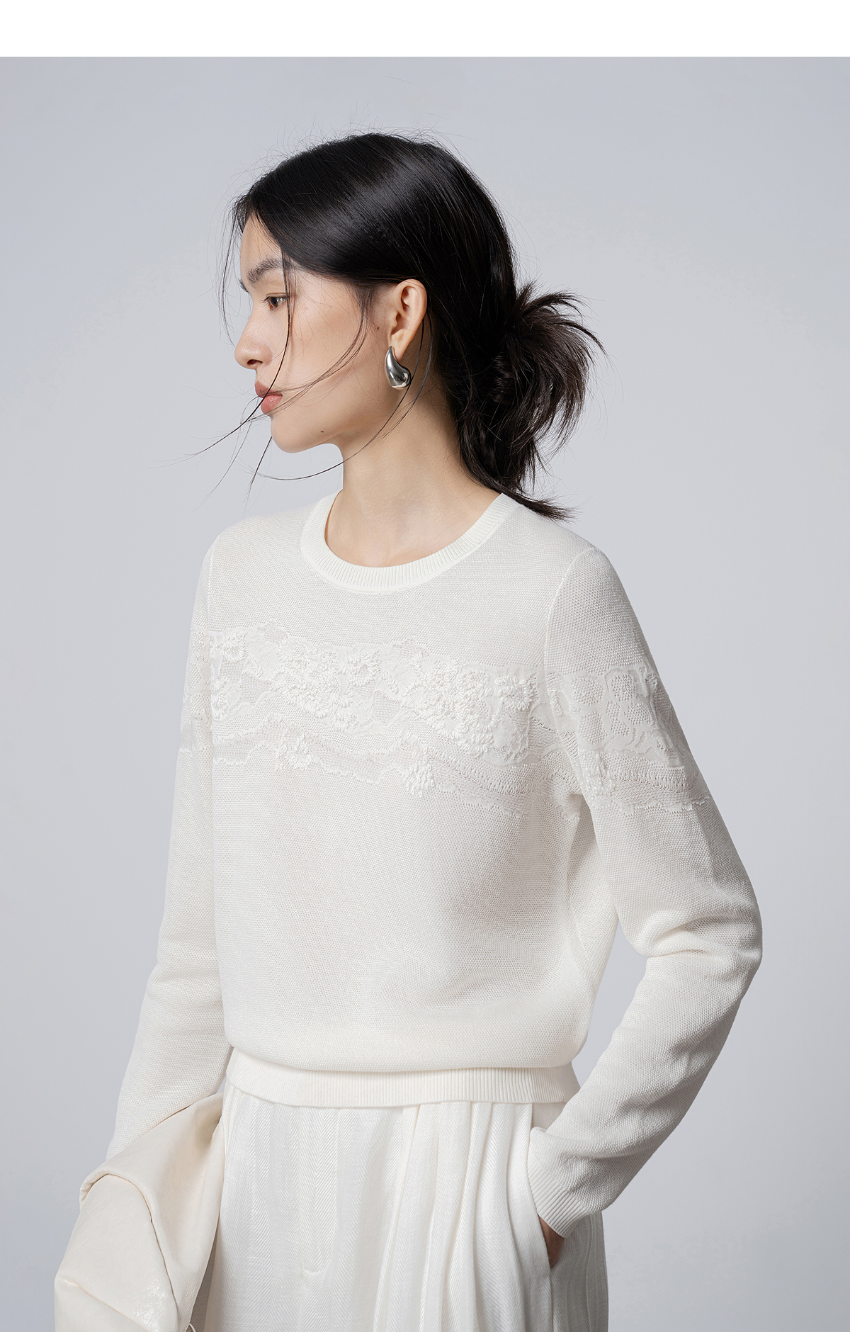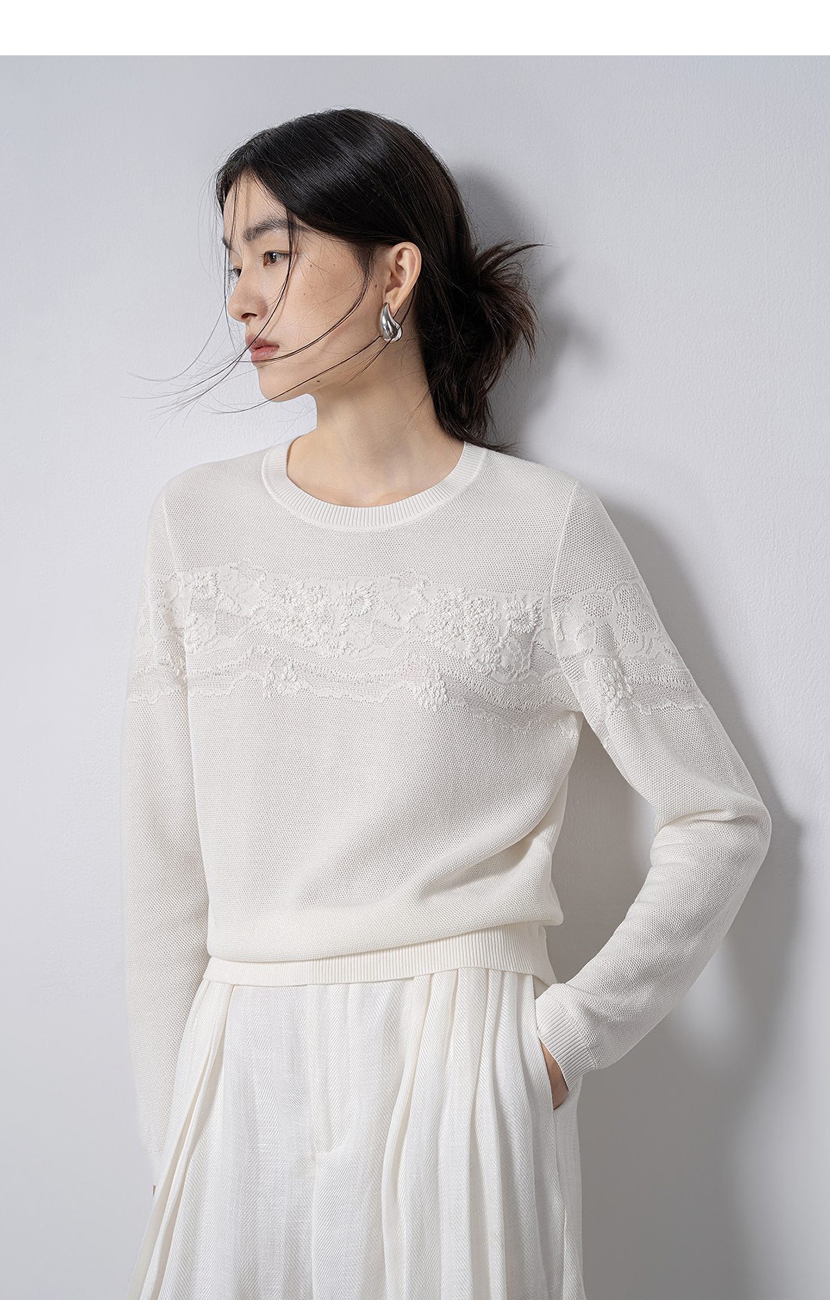 【林栖设计小店】手工绣花|米白优雅百搭气质2026春新款宽松毛织上衣1961094