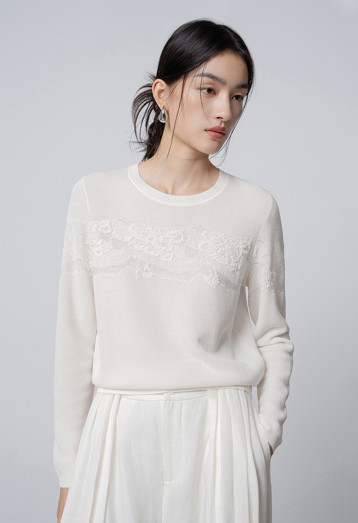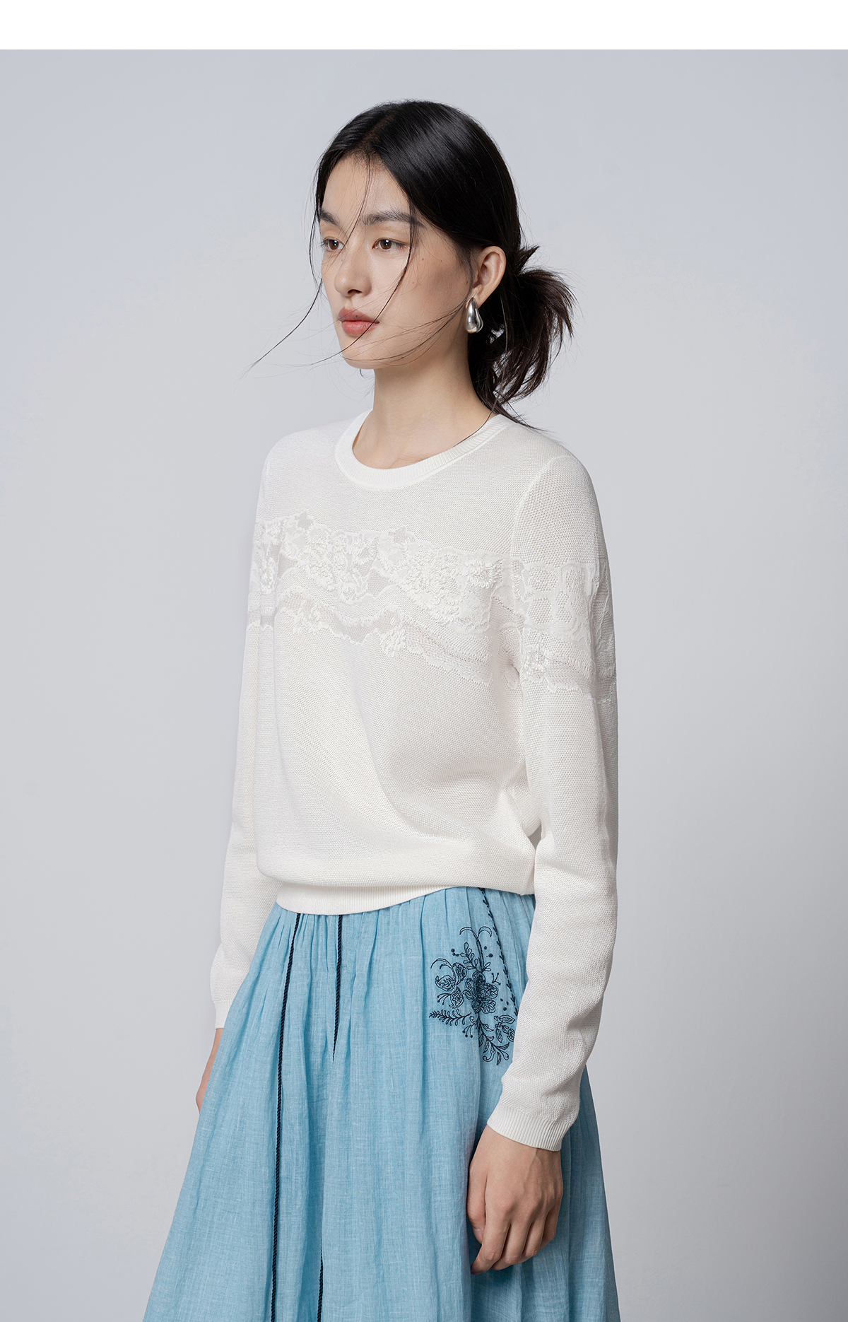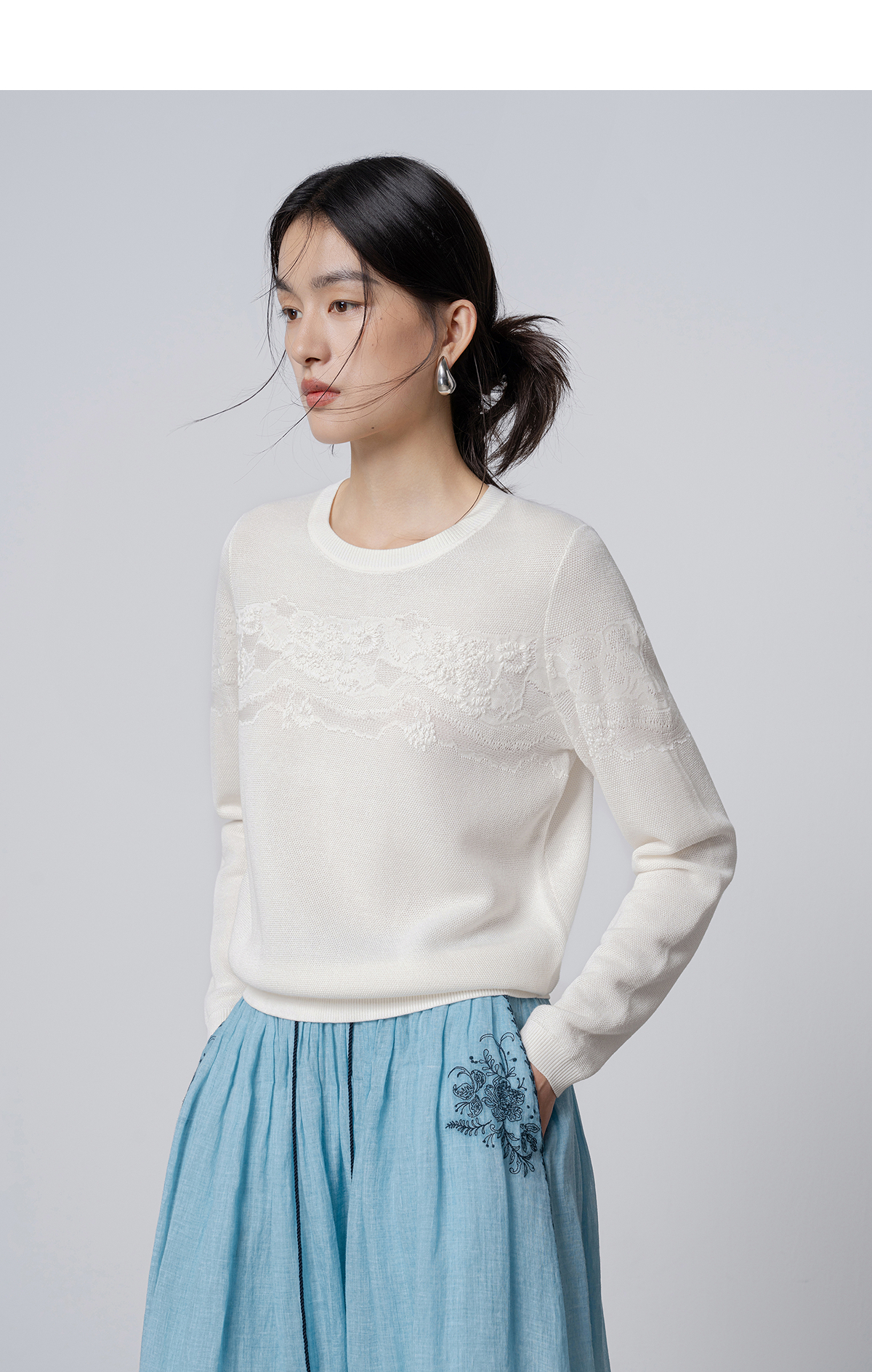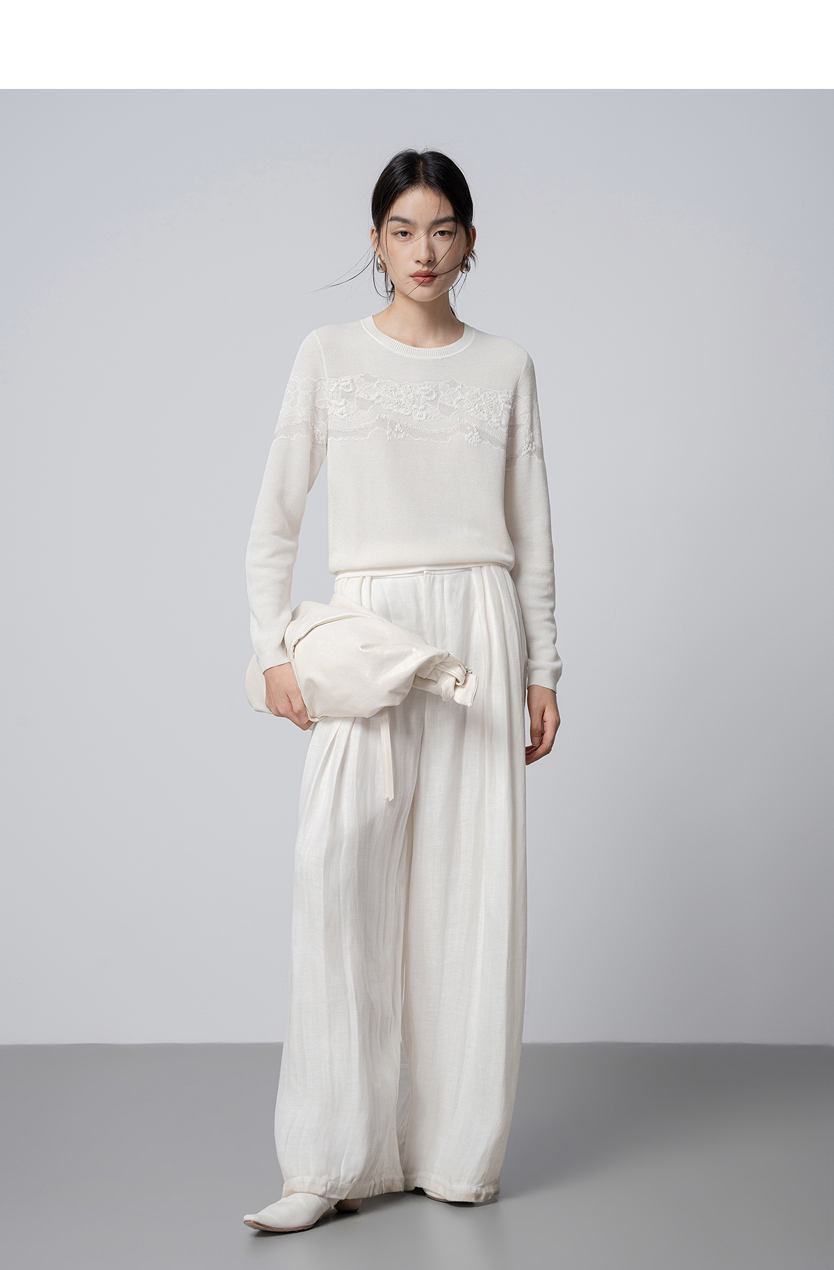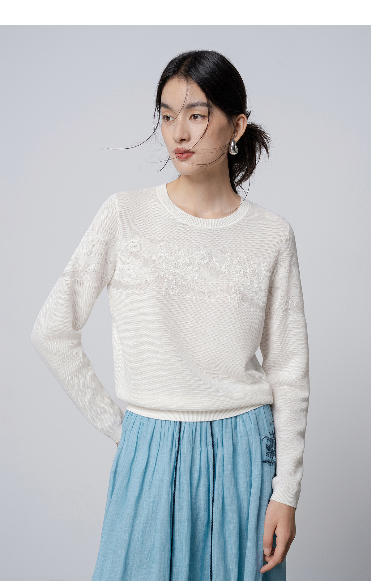 【林栖设计小店】手工绣花|米白优雅百搭气质2026春新款宽松毛织上衣1961094
