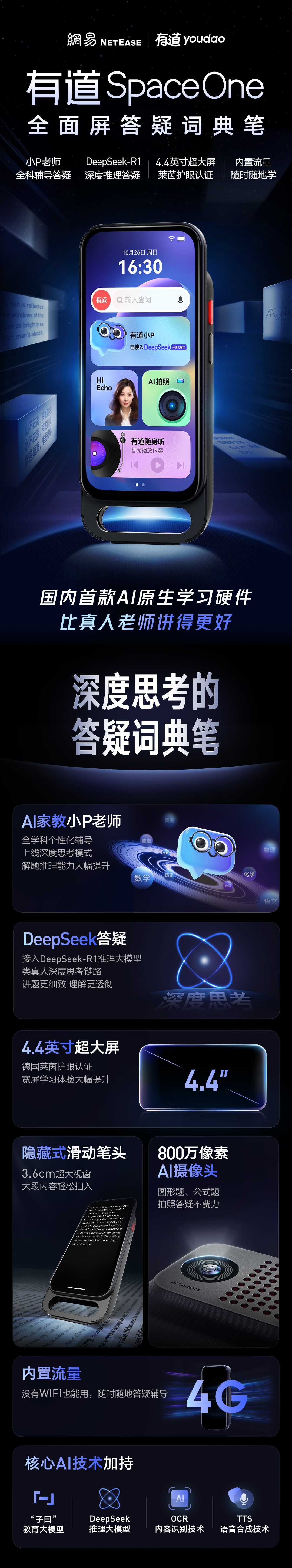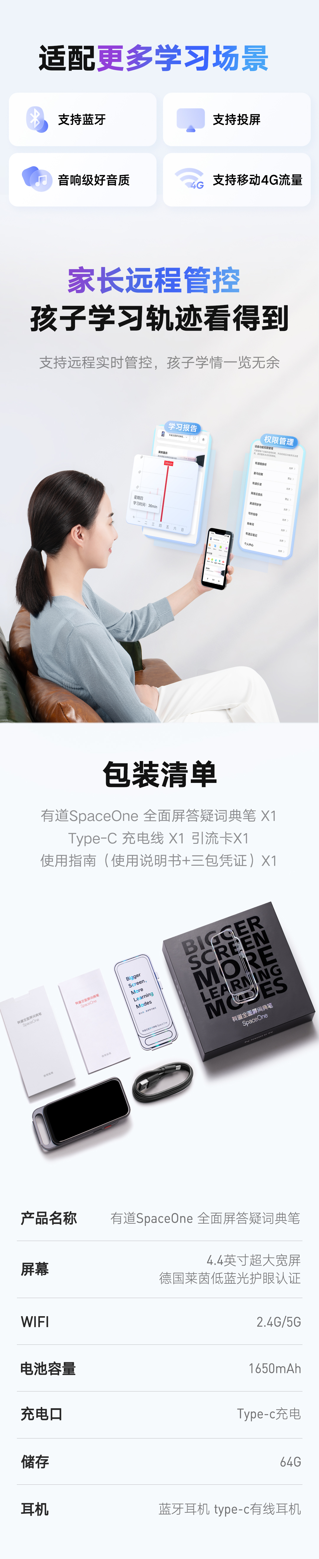 【官方正品】有道全面屏答疑词典笔SpaceOne 适用小初高中生
