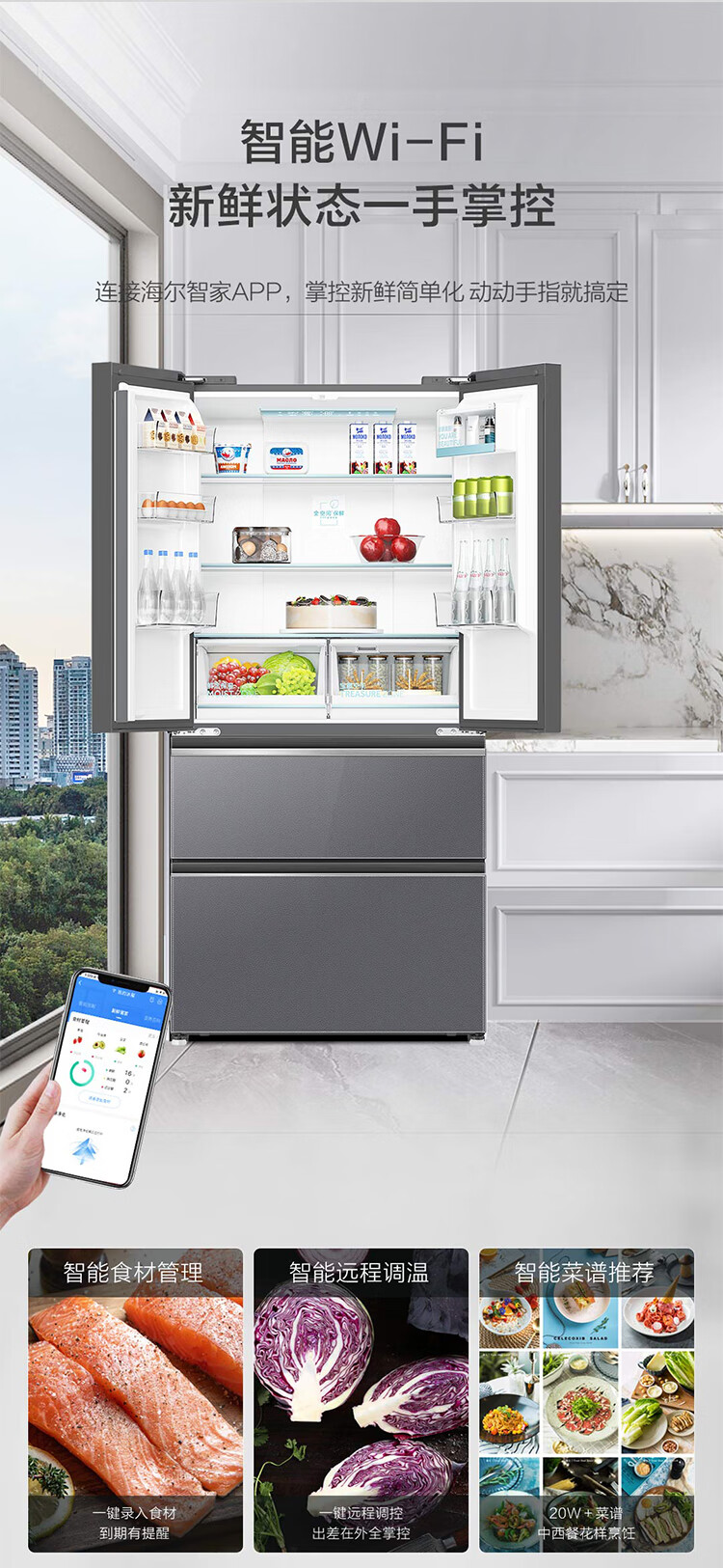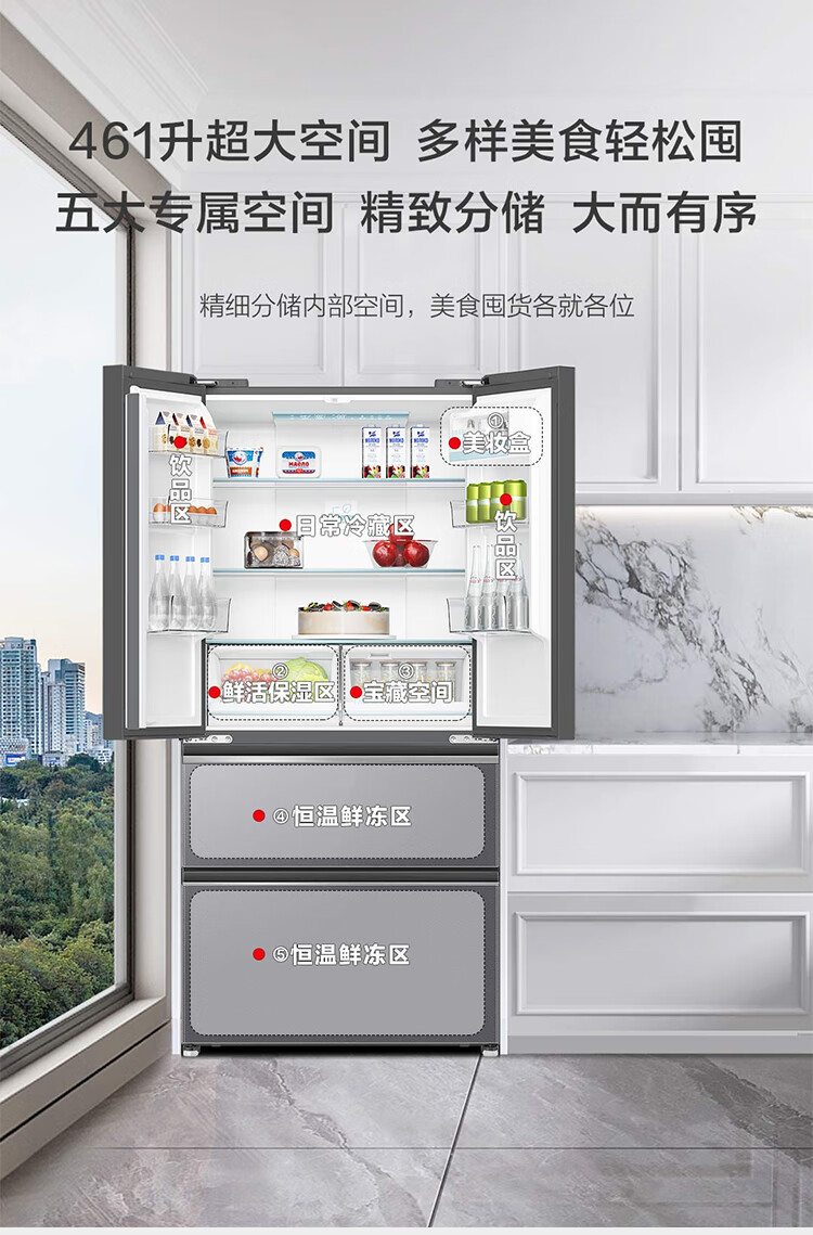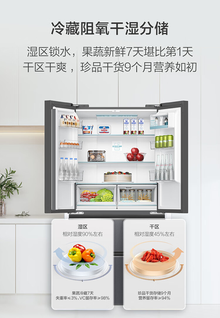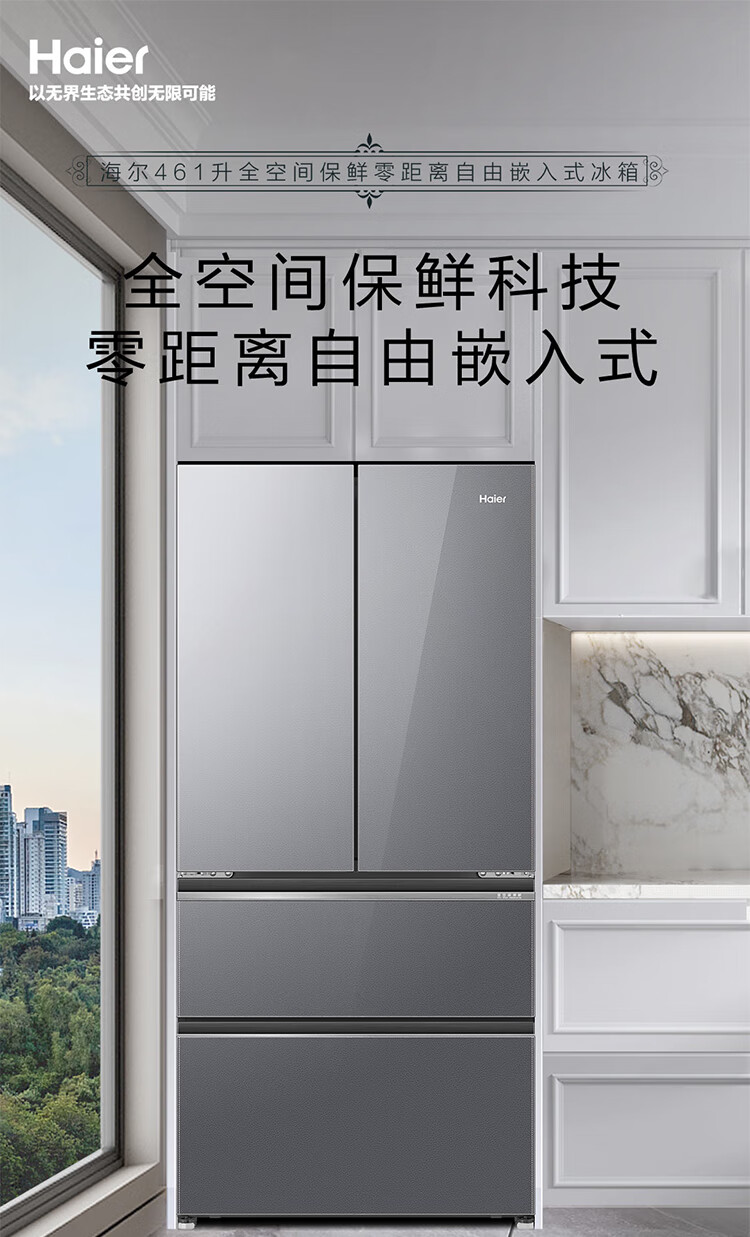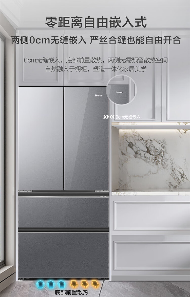 海尔法式冰箱461升零嵌入式式多门四开门对开门电冰箱家用全空间保鲜科技一级能效风冷无霜超薄大容量 EPP超净系统+阻氧干湿分储+三档变温