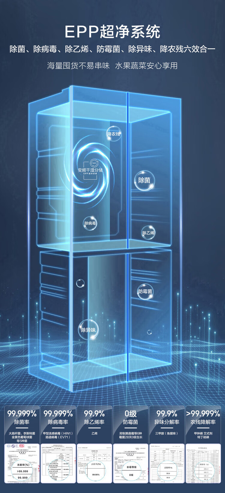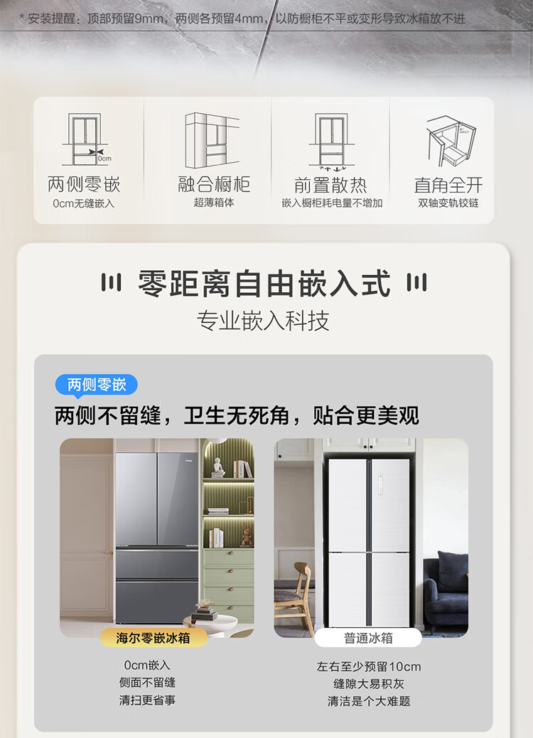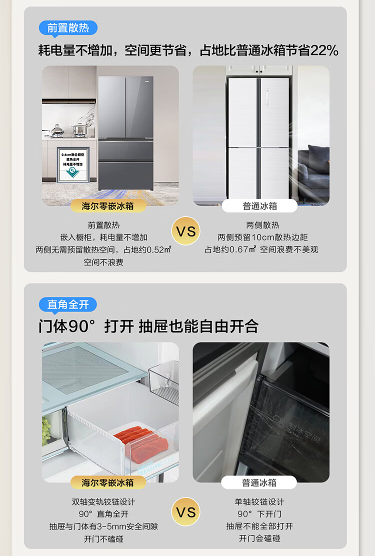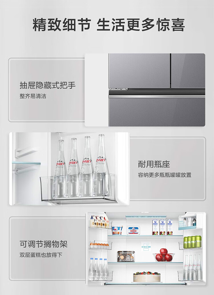 海尔法式冰箱461升零嵌入式式多门四开门对开门电冰箱家用全空间保鲜科技一级能效风冷无霜超薄大容量 EPP超净系统+阻氧干湿分储+三档变温