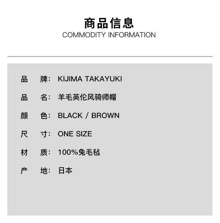 KIJIMA TAKAYUKI FELT JOCKEY CAP 羊毛英伦风骑师帽