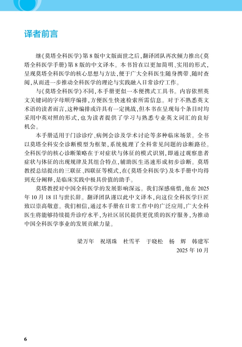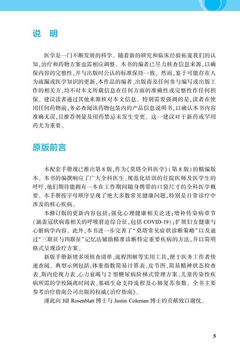 莫塔全科医学手册 第8八版 梁万年 祝墡珠 杜雪平 于晓松 主译 参考书 西医 临床诊断与治疗 临床医学9787117359146人民卫生出版社