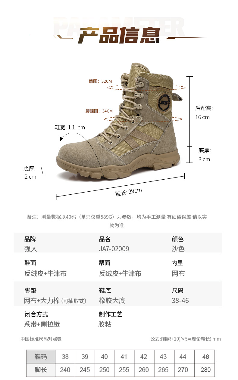 强人3515原厂作战靴男靴新款沙漠靴户外骑行靴耐磨登山靴高帮训练短靴