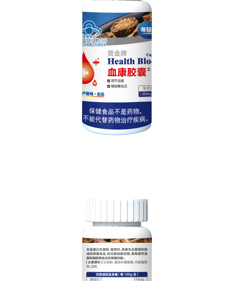 年轻态黄金牌血康x胶囊 调节血脂辅助降血压10.5g(350mg/粒*30粒/瓶)