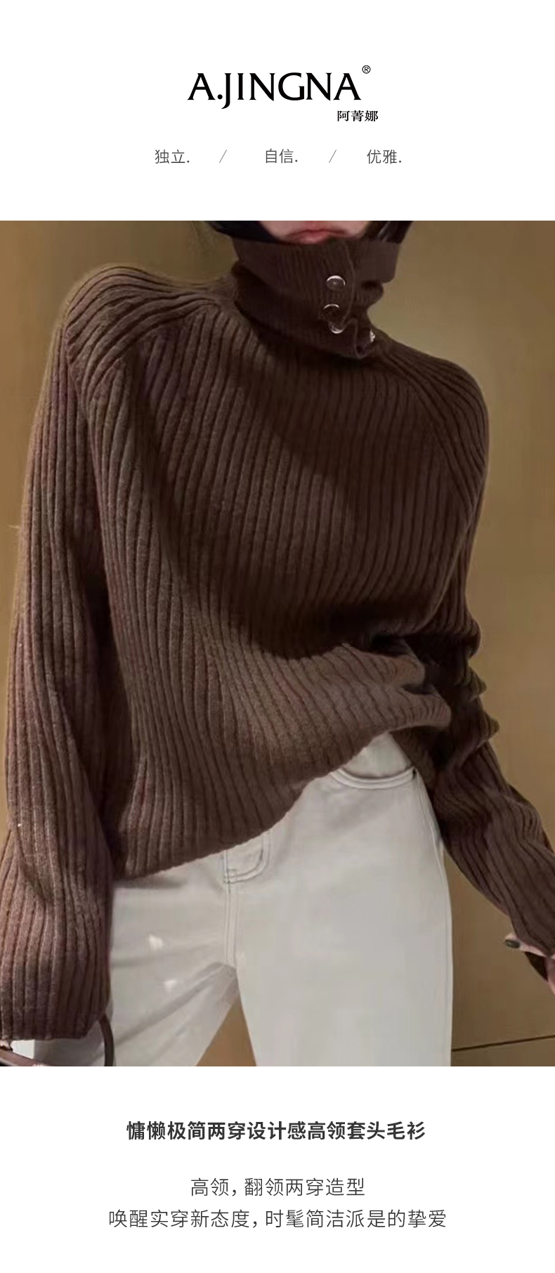 【时髦简洁派】阿菁娜慵懒极简两穿设计感高领套头毛衫F29D302013