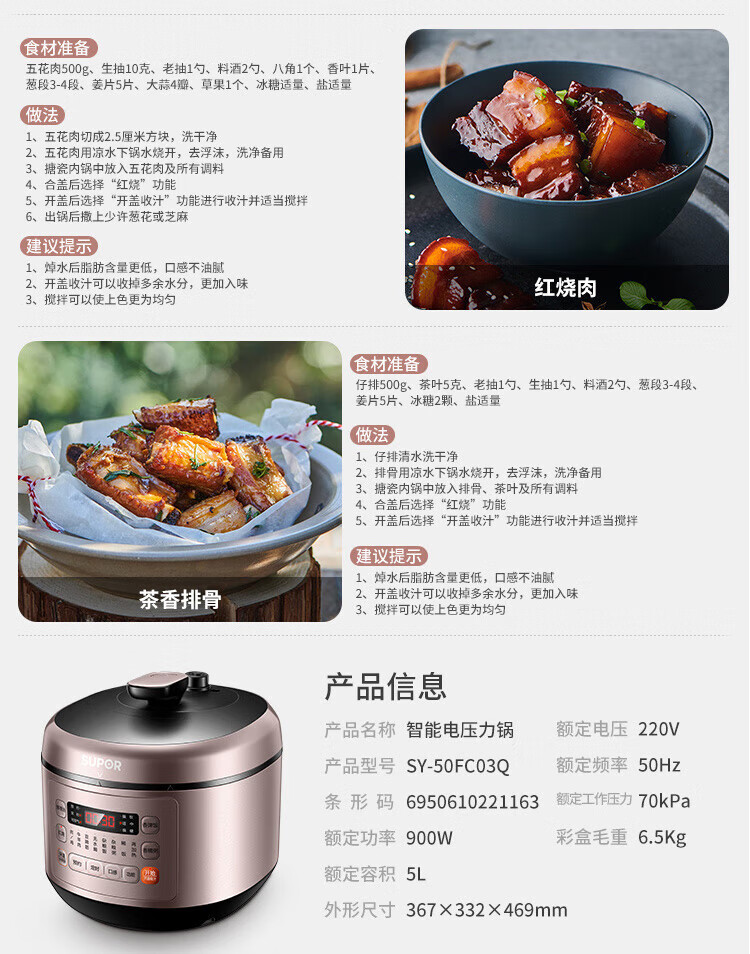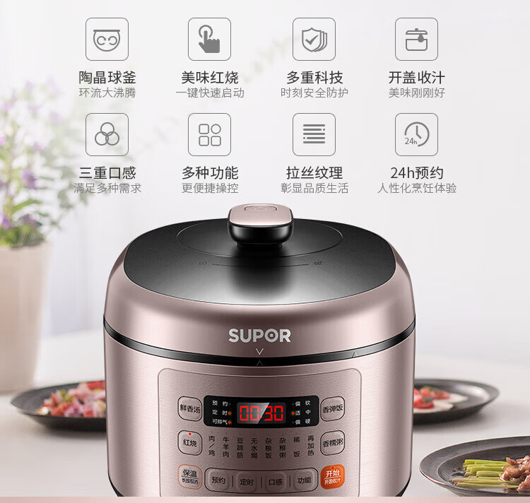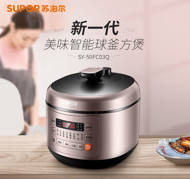 苏泊尔(SUPOR)电压力锅ZMD安心系列5升智能球釜 环流大沸腾家用大容量蒸煮饭煲 6-8人 SY-50FC03Q