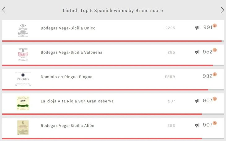 在全球最大的葡萄酒网站Wine Searcher上,西班牙评分前五的的酒款中,有三款都来自Vega Sicilia,分别是西班牙评分第一的Vega Sicilia Unico、第二的Vega Sicilia Valbuena、和第五的Vega Sicilia Alion