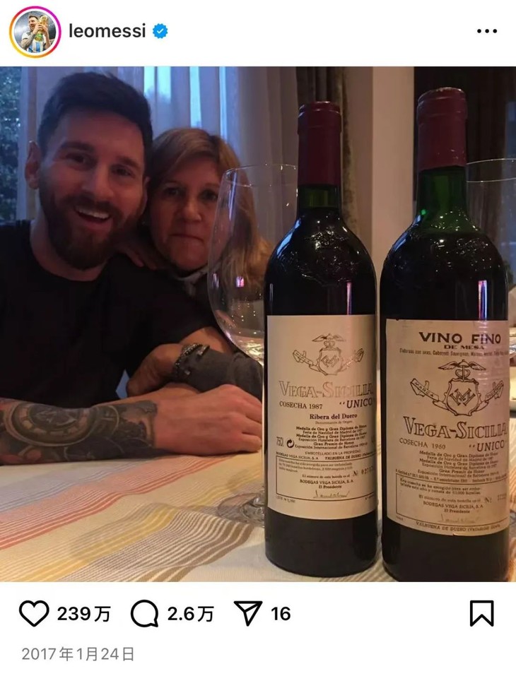 他还是世界球王梅西的醉爱,他收藏了全年份的Vega Sicilia Unico,在家人重要的场合都会拿出来享用