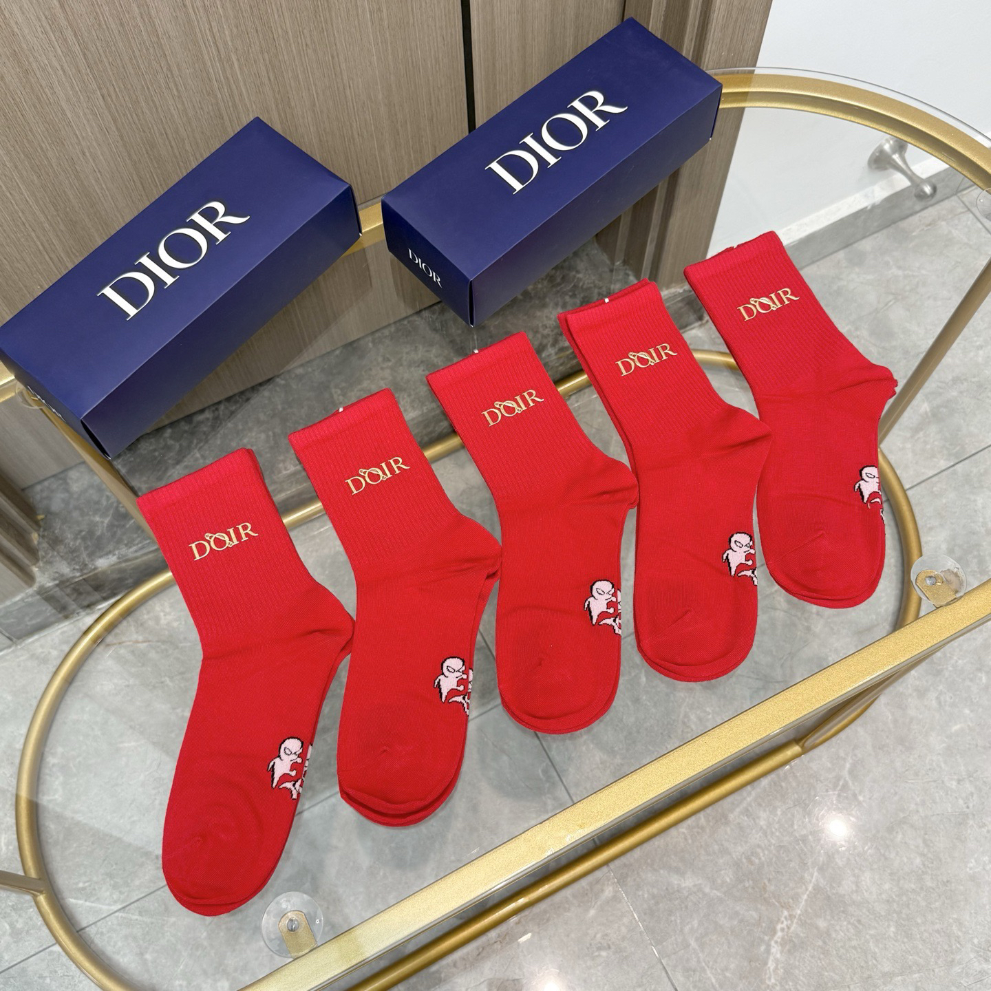 秋冬特惠💰140【一盒五双】迪家袜子 红红火火过年袜 专柜同款字母烫金中长款袜子!