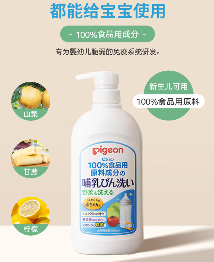 贝亲(Pigeon)奶瓶果蔬清洗剂植物性清洁力强 易清洗无残留 800ml